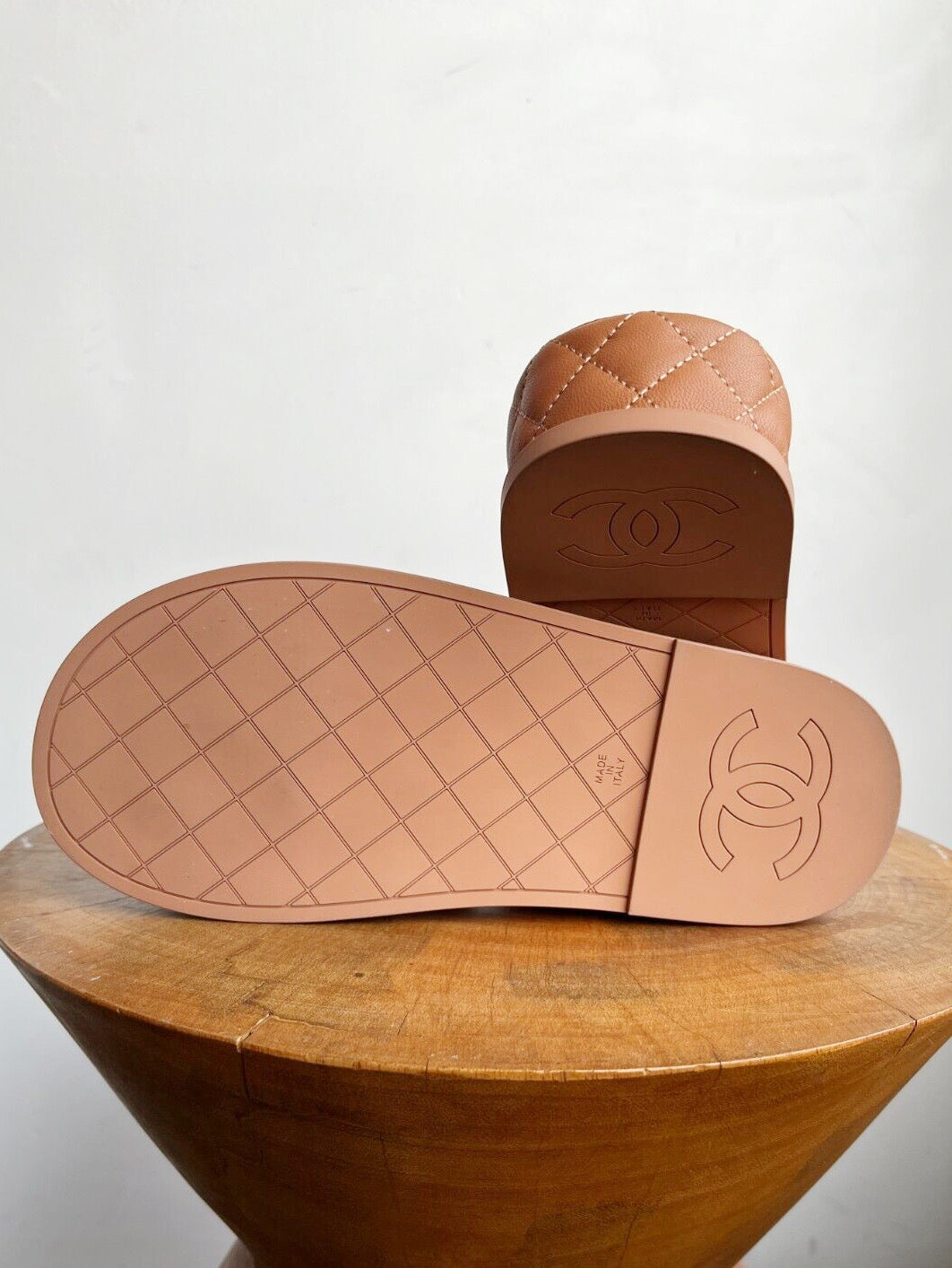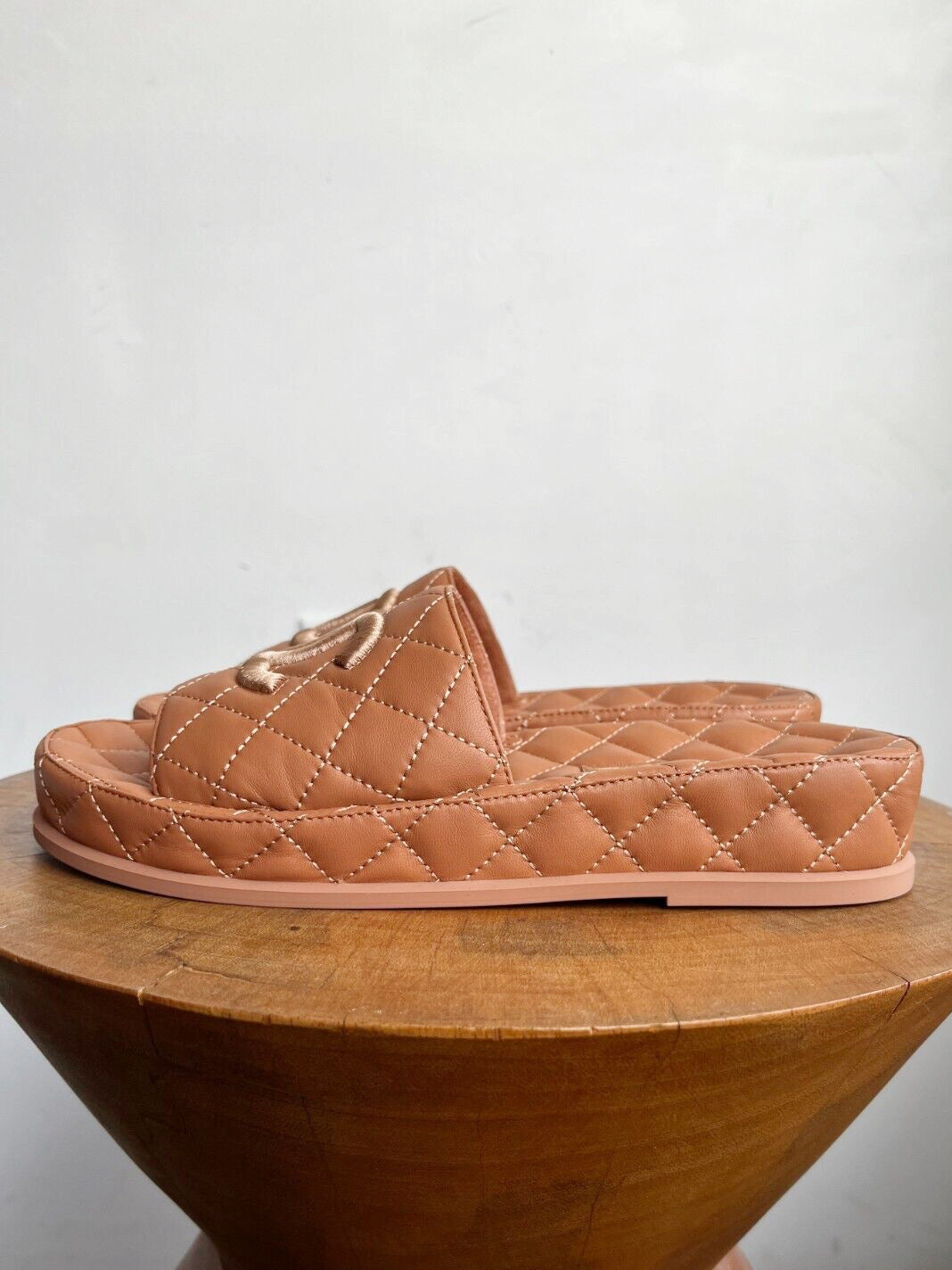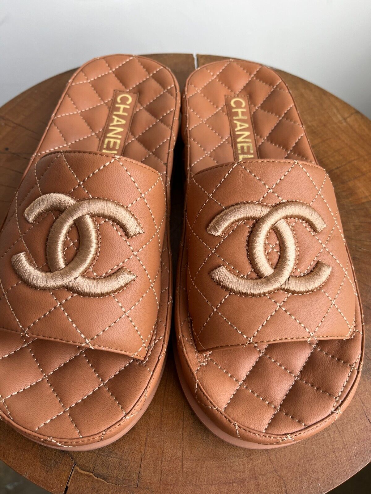 2021 TAN QUILTED CC PLATFORM SANDAL