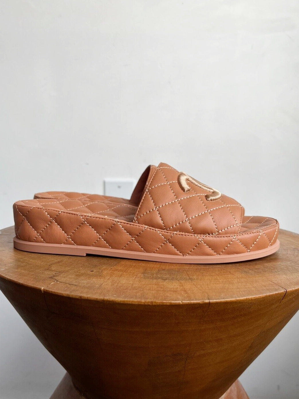 Tan brown quilted leather
