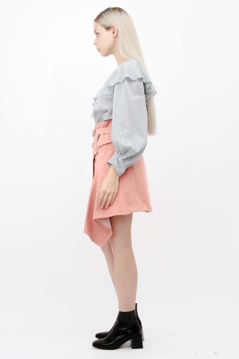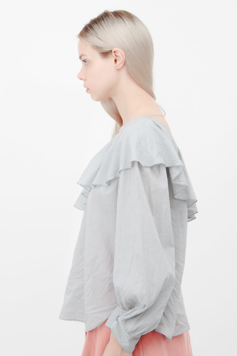 Cascading ruffle and billowy poet sleeve