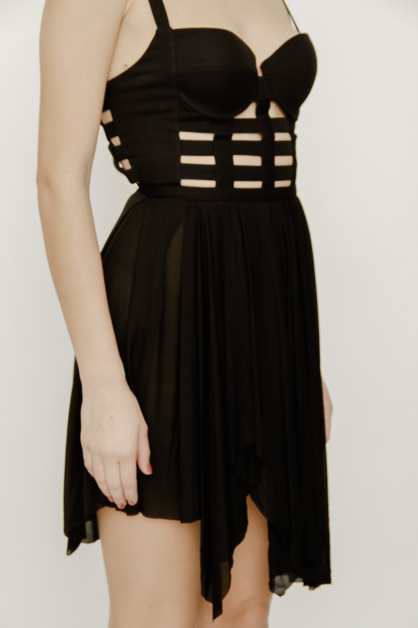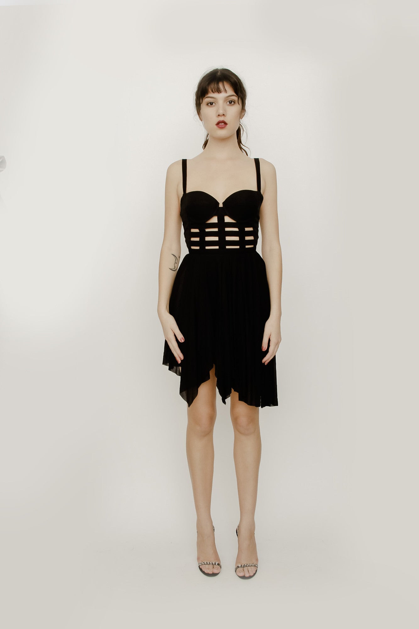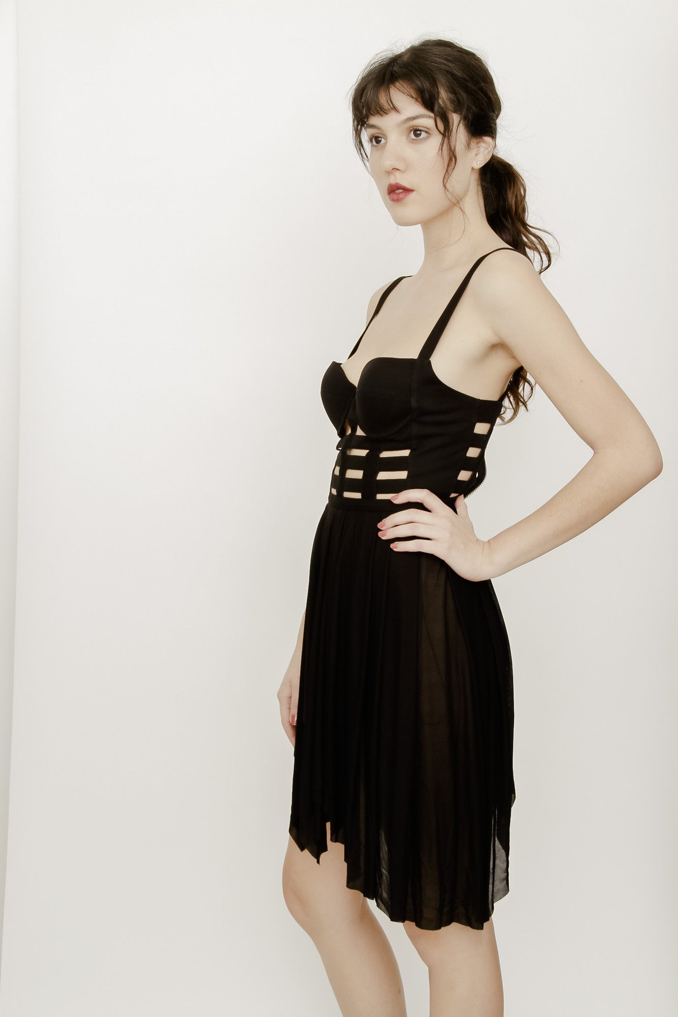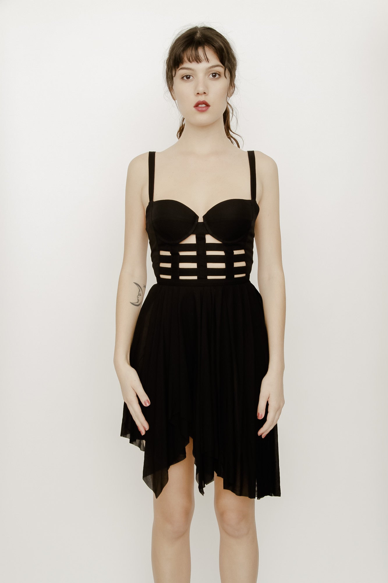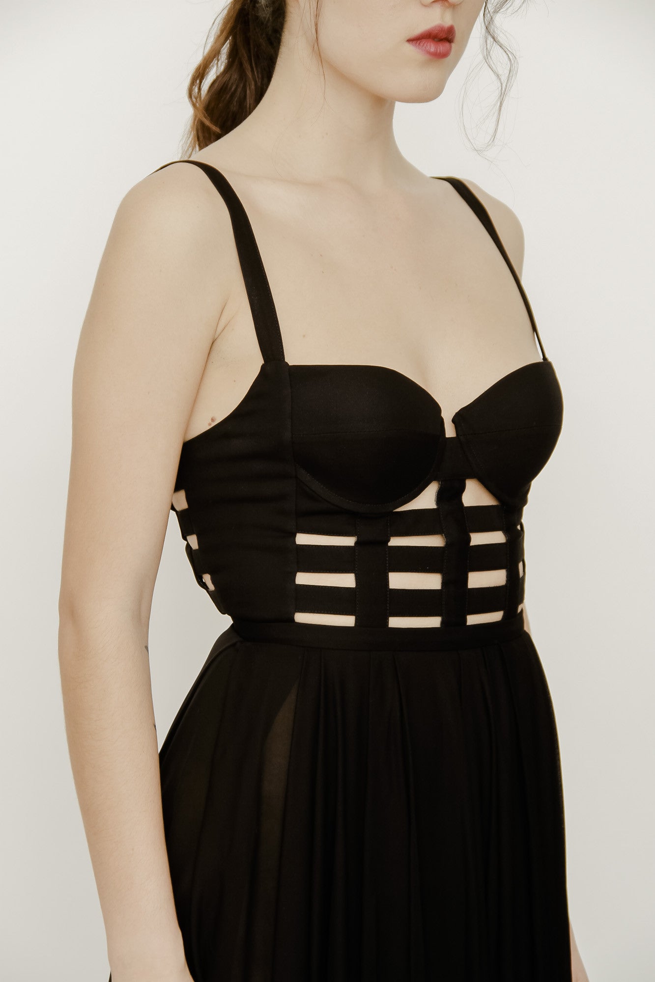 BALMAIN BLACK CAGED BUSTIER DRESS
