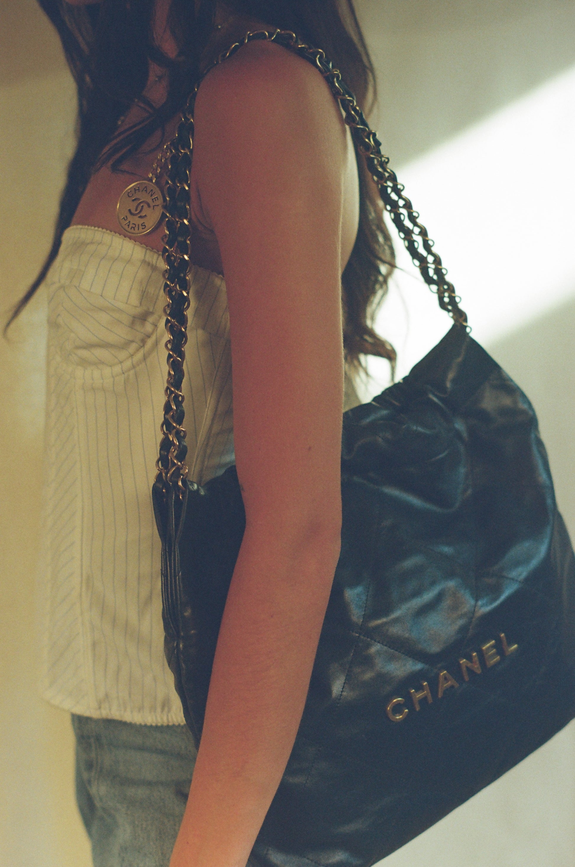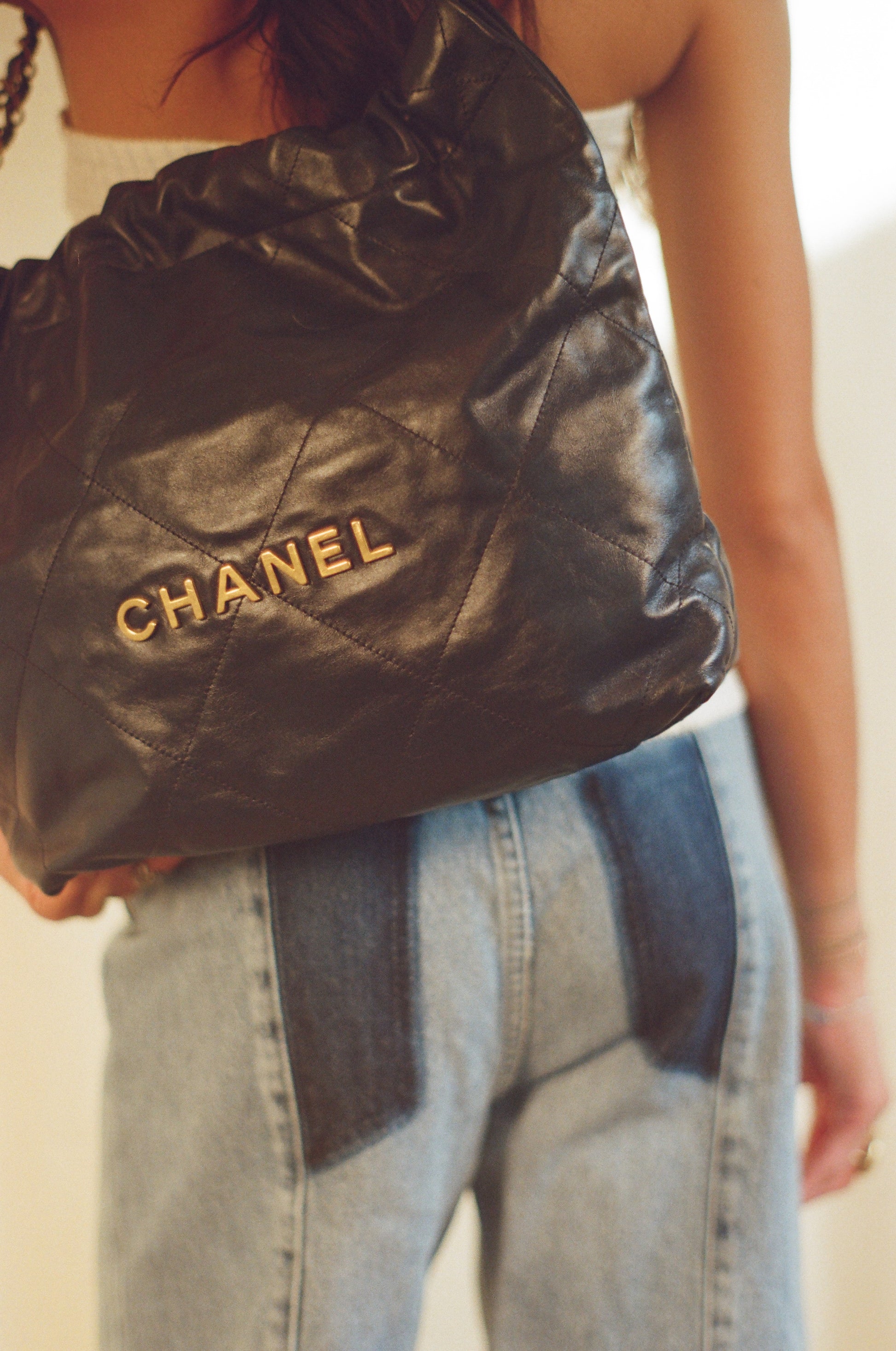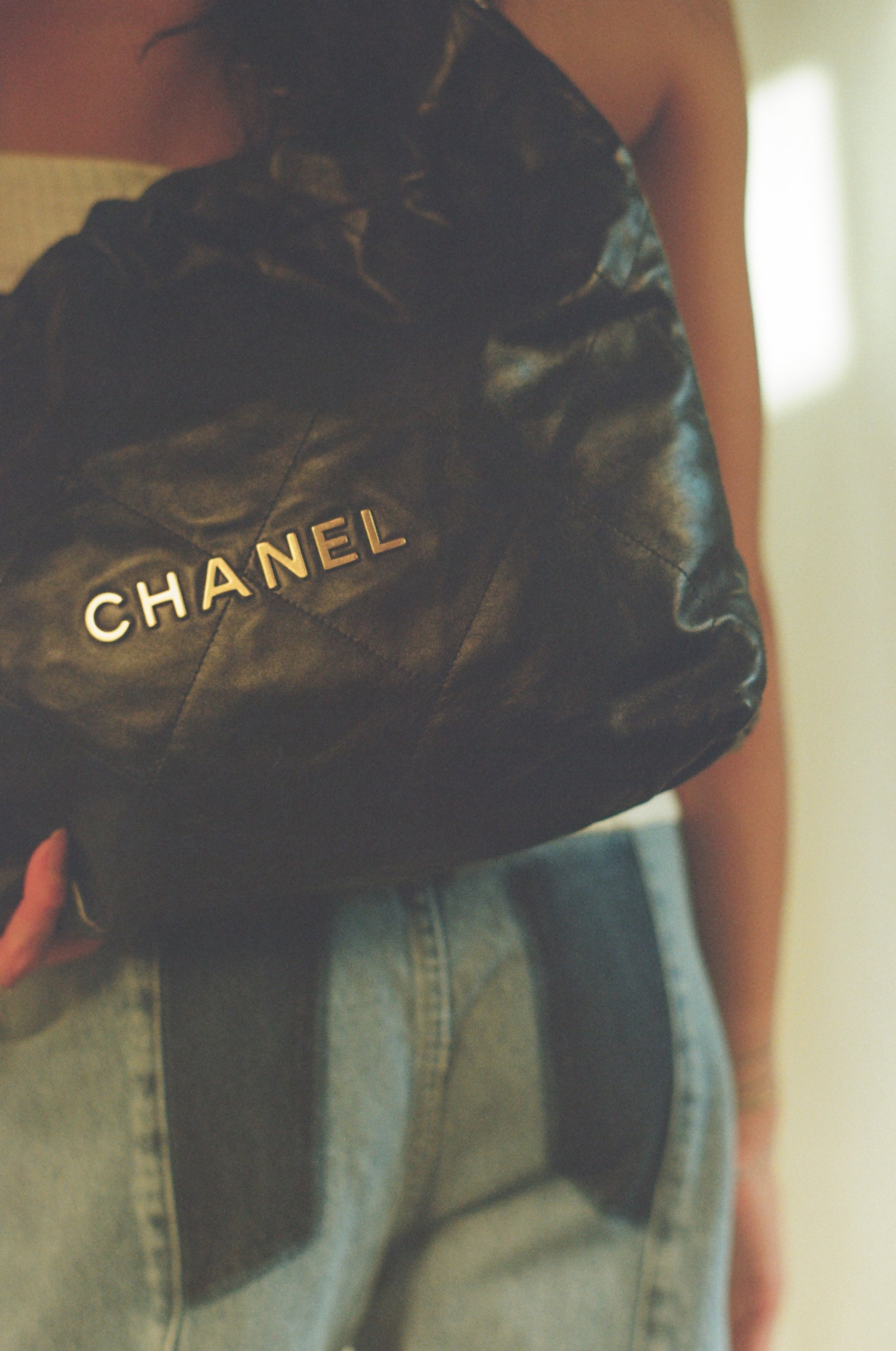 CHANEL NAVY LEATHER QUILTED HOBO TOTE BAG