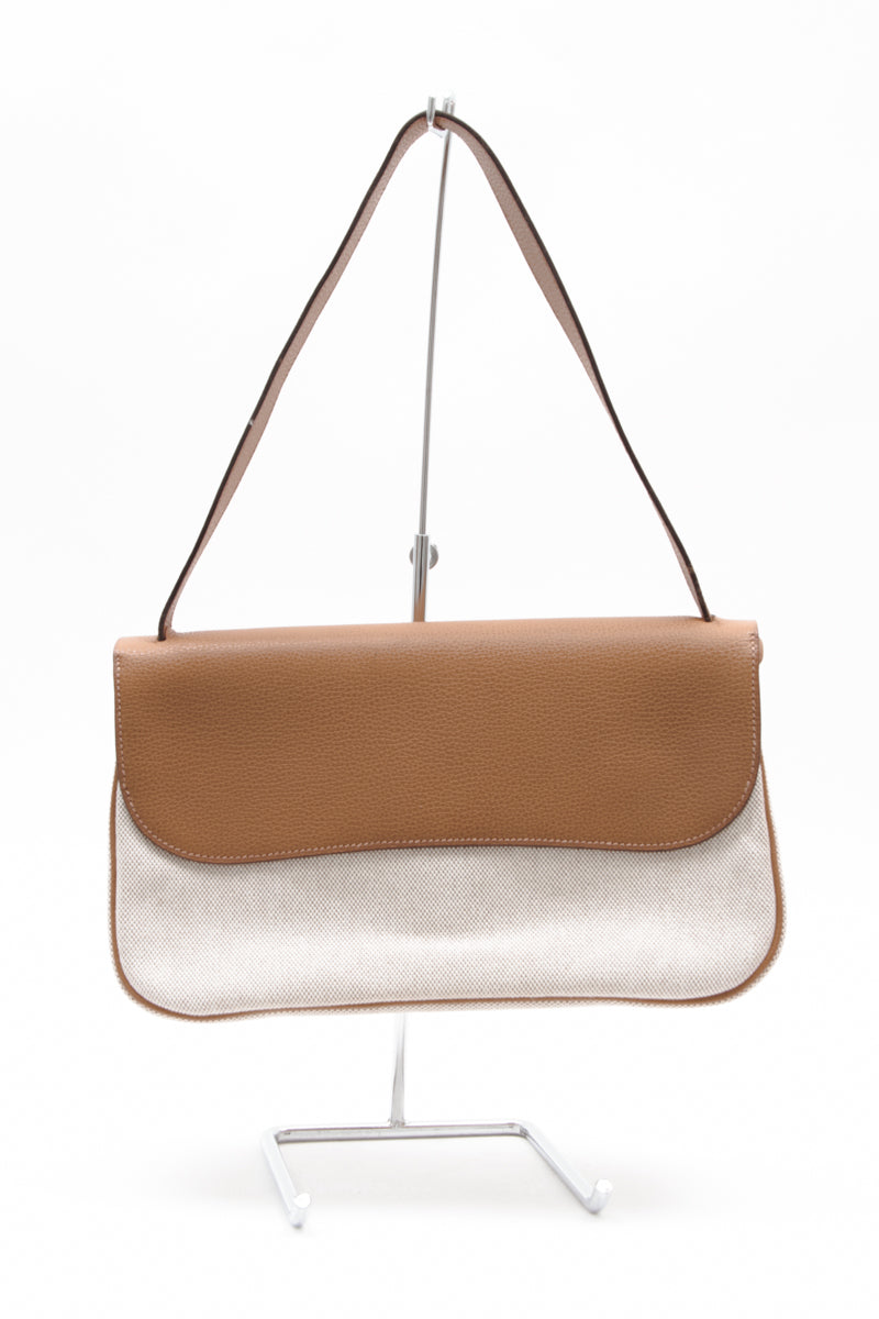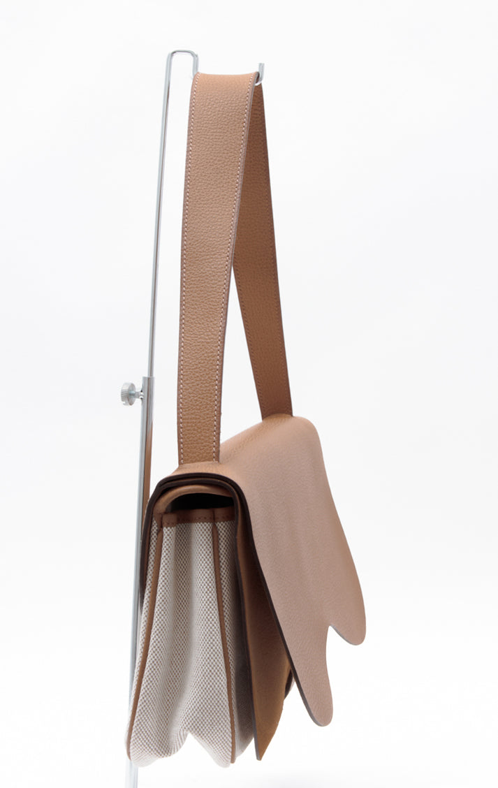 Clemence (baby bull) leather, suede leather trim and canvas body