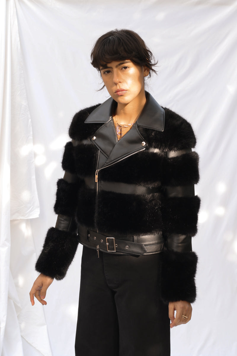 Fabric1: 100% acrylic; fabric2: 100% synthetic leather; padding: 100% polyester; lining: 100% cupro