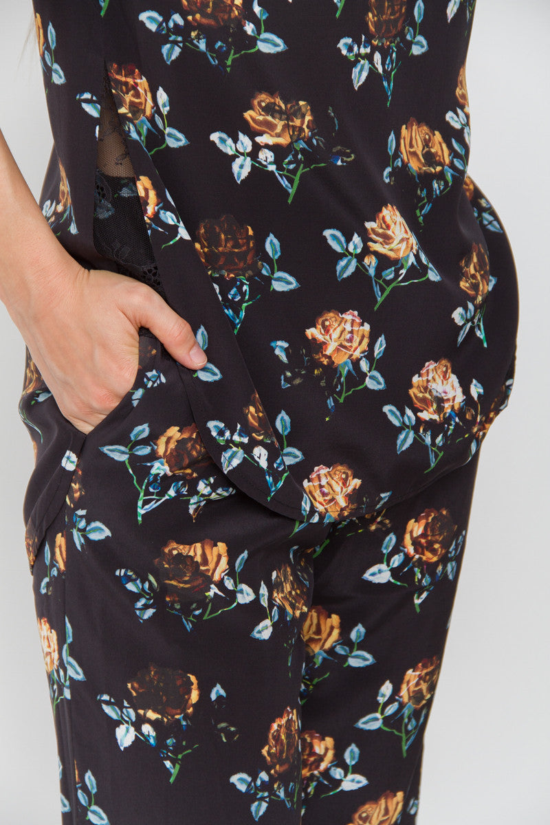 FLORAL SILK PANTS