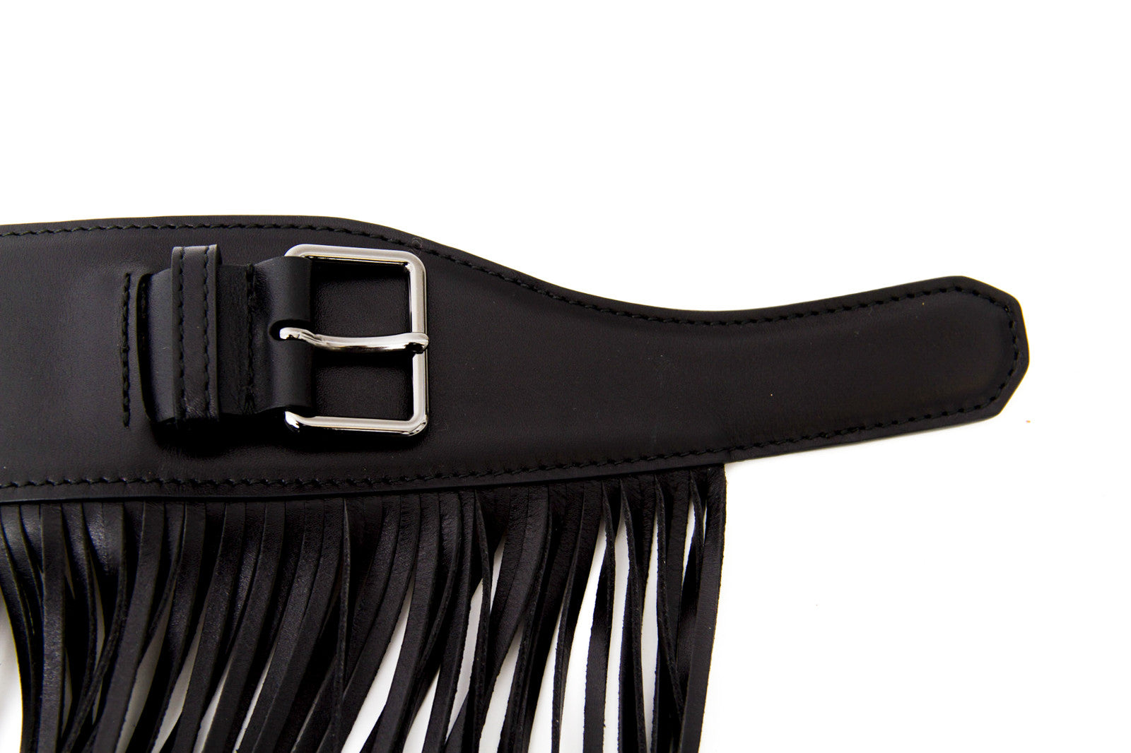 ALAIA BLACK LEATHER FRINGE BELT