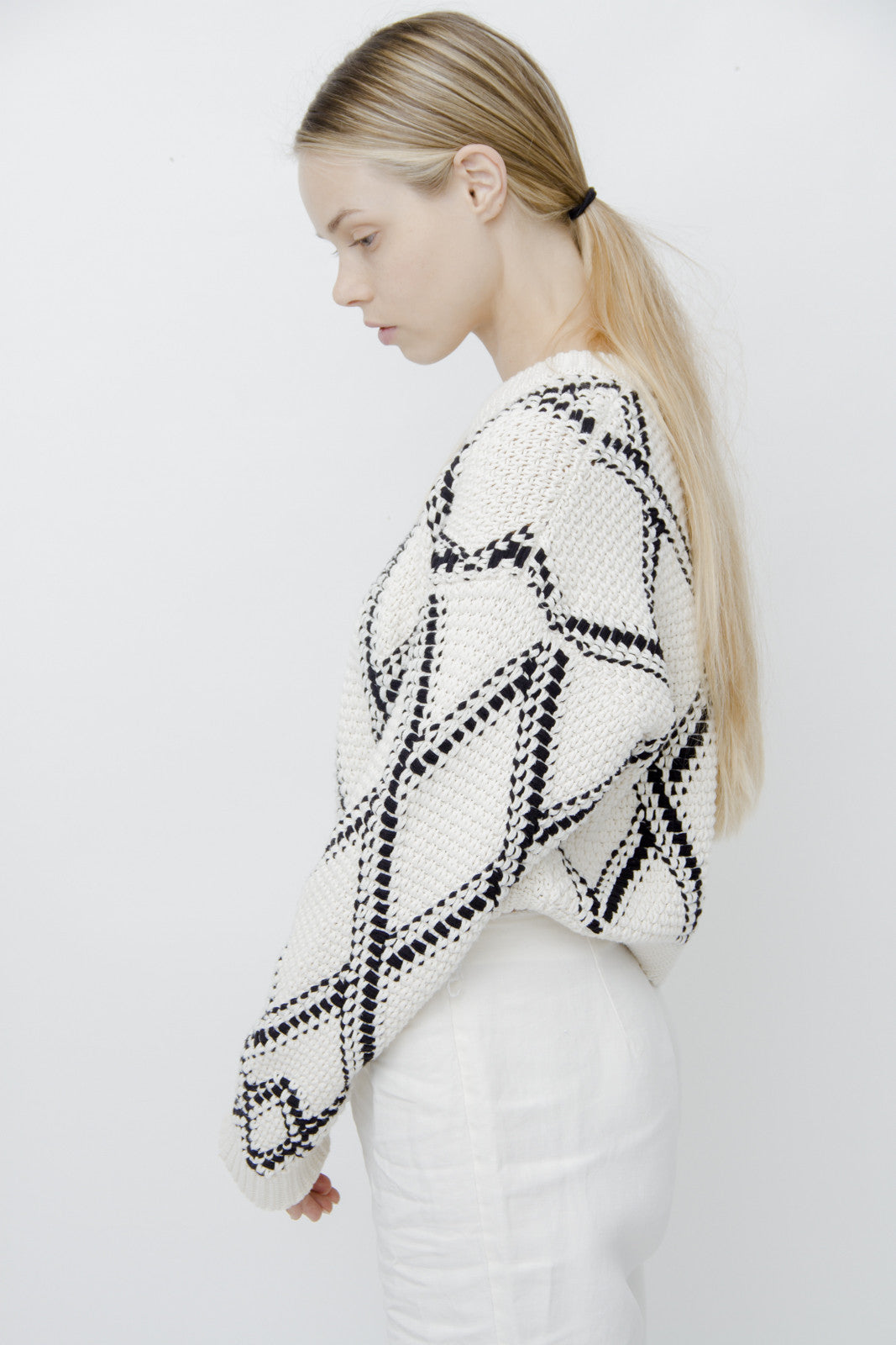 GRID CROPPED KNIT SWEATER