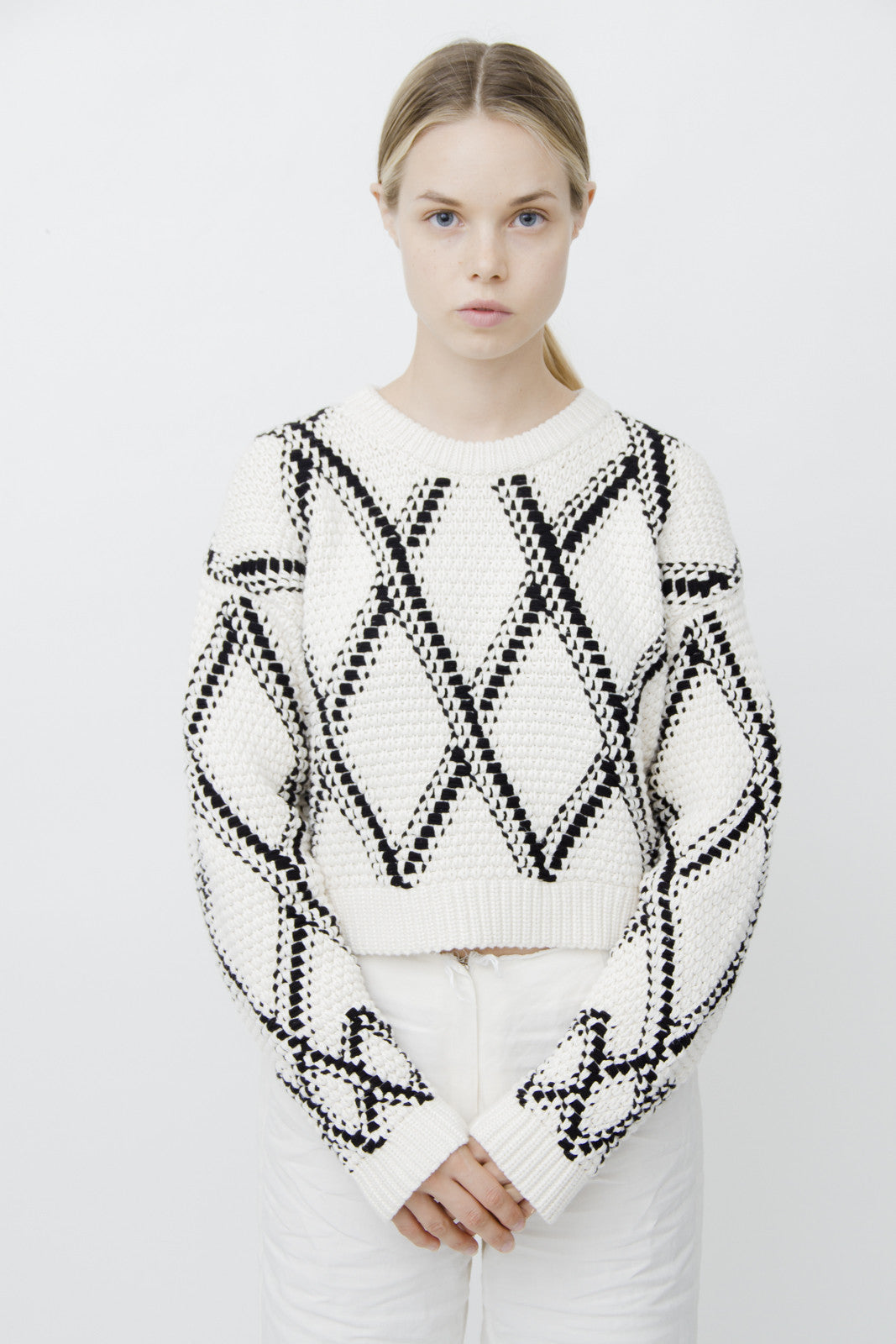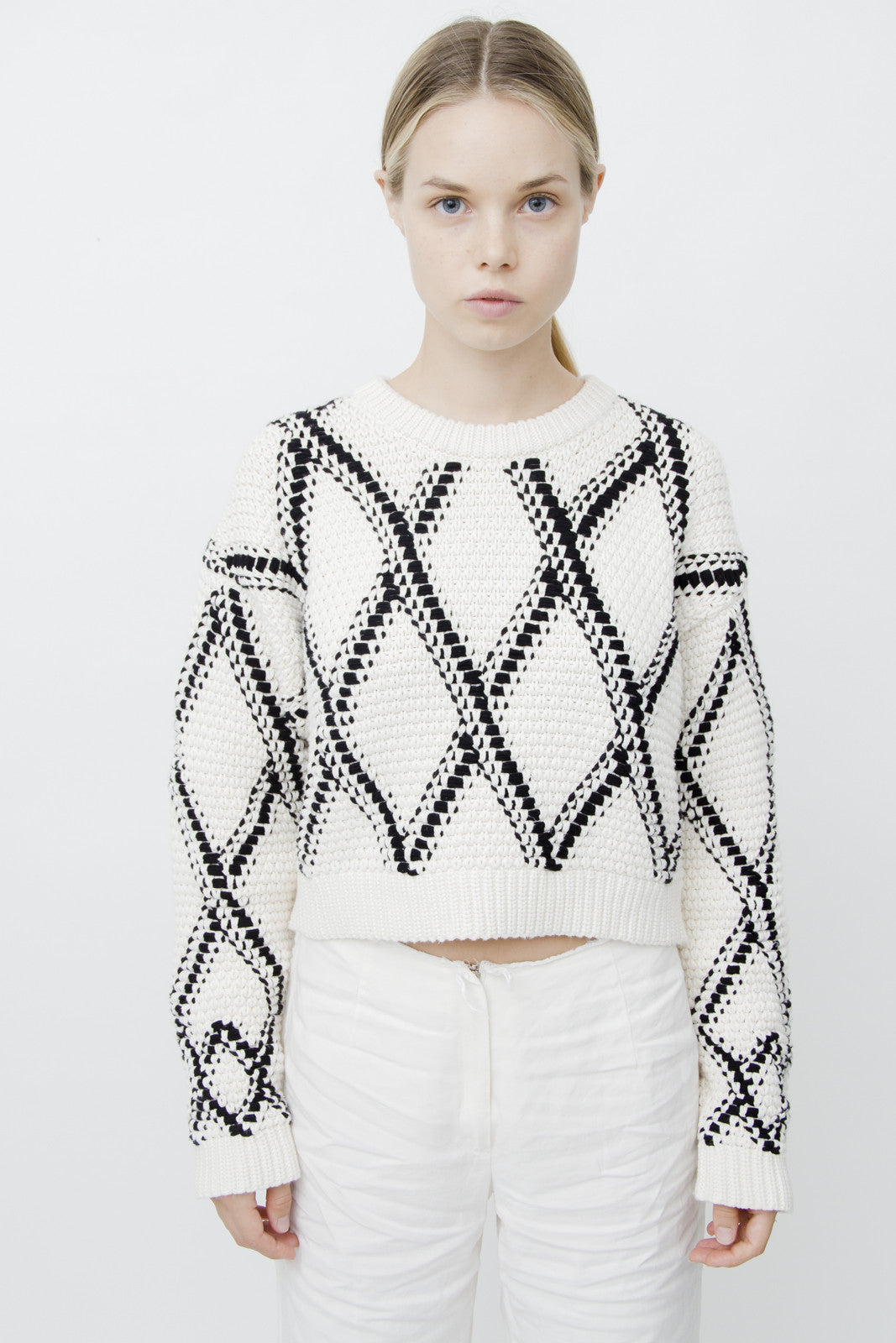 PROENZA SCHOULER GRID CROPPED KNIT SWEATER