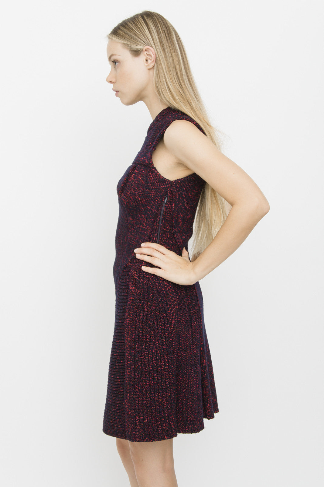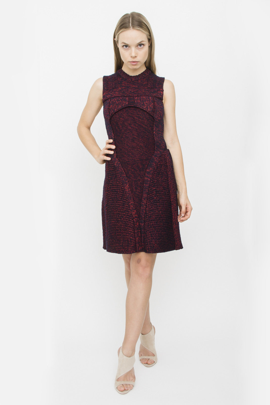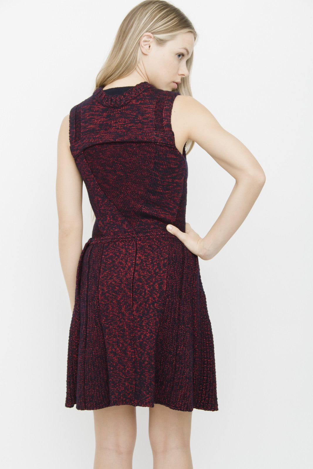CHRISTIAN DIOR RED BLACK INTARSIA KNIT DRESS