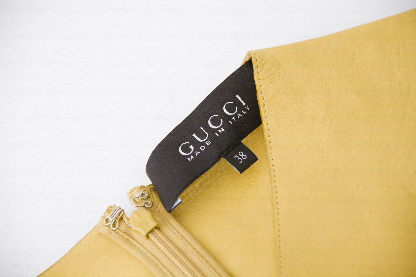 GUCCI MUSTARD YELLOW LEATHER AND SILK DRESS