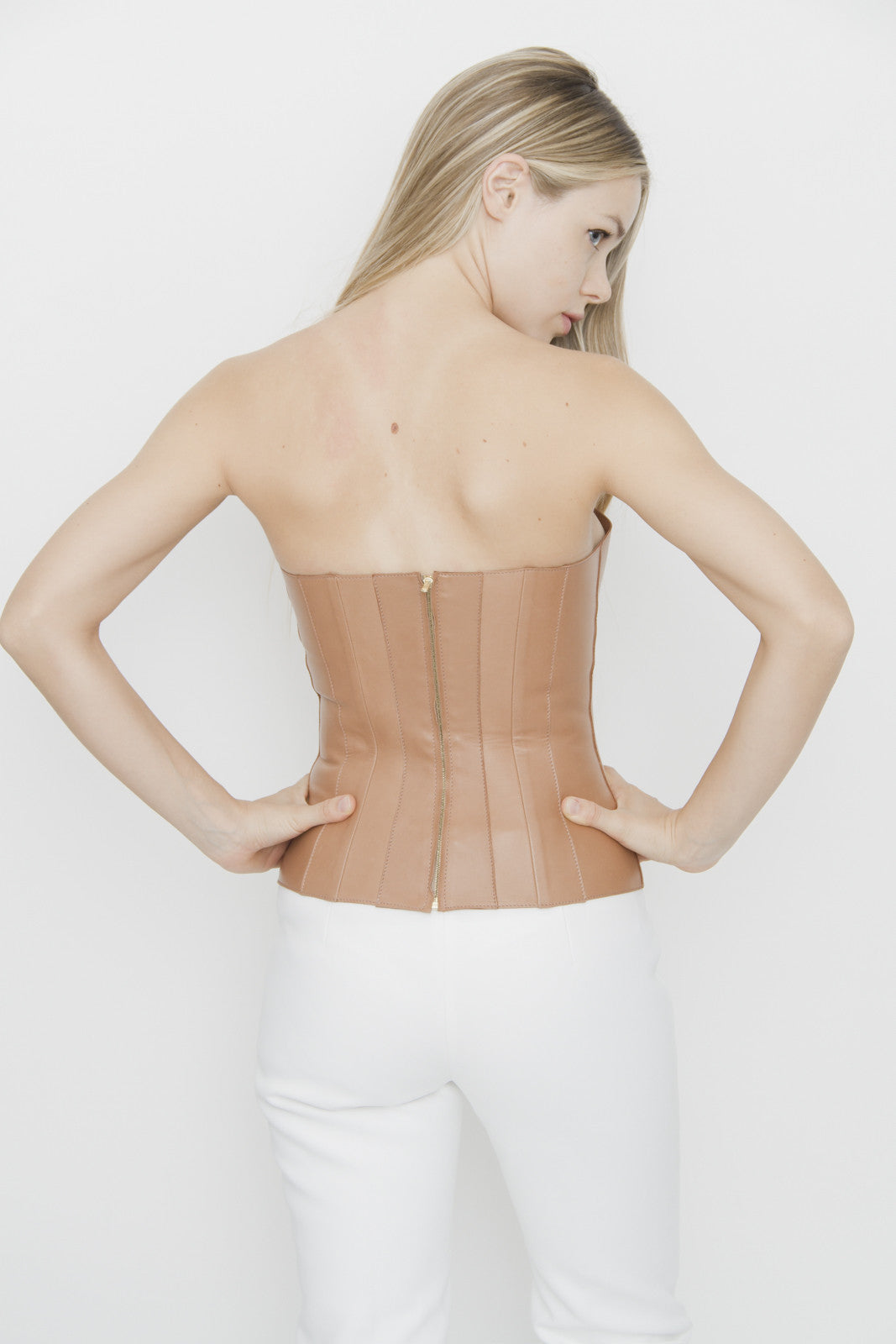 NUDE LEATHER BUSTIER TOP