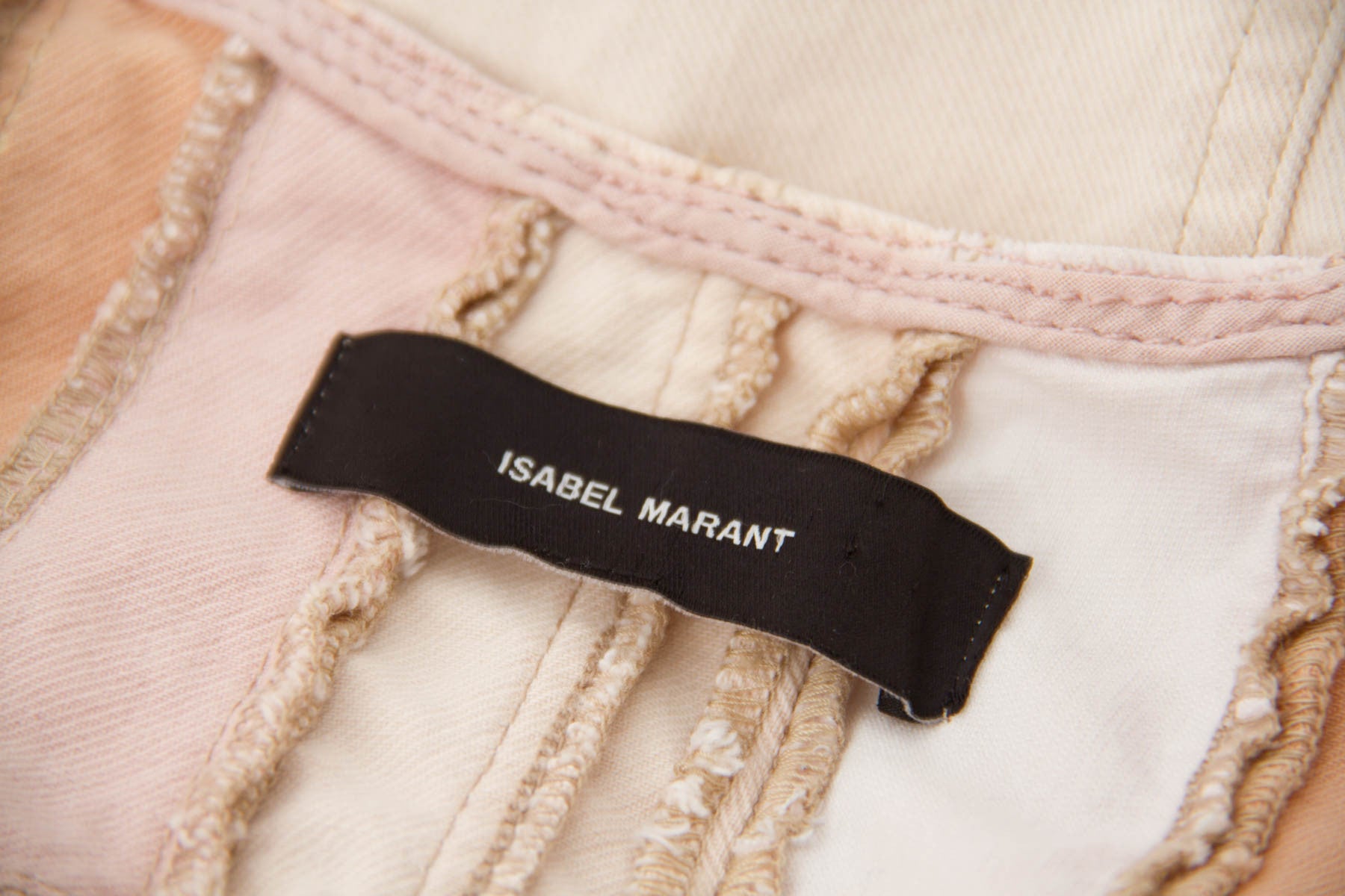 A couple very small brown marks on front side waist (could come out with cleaning)
