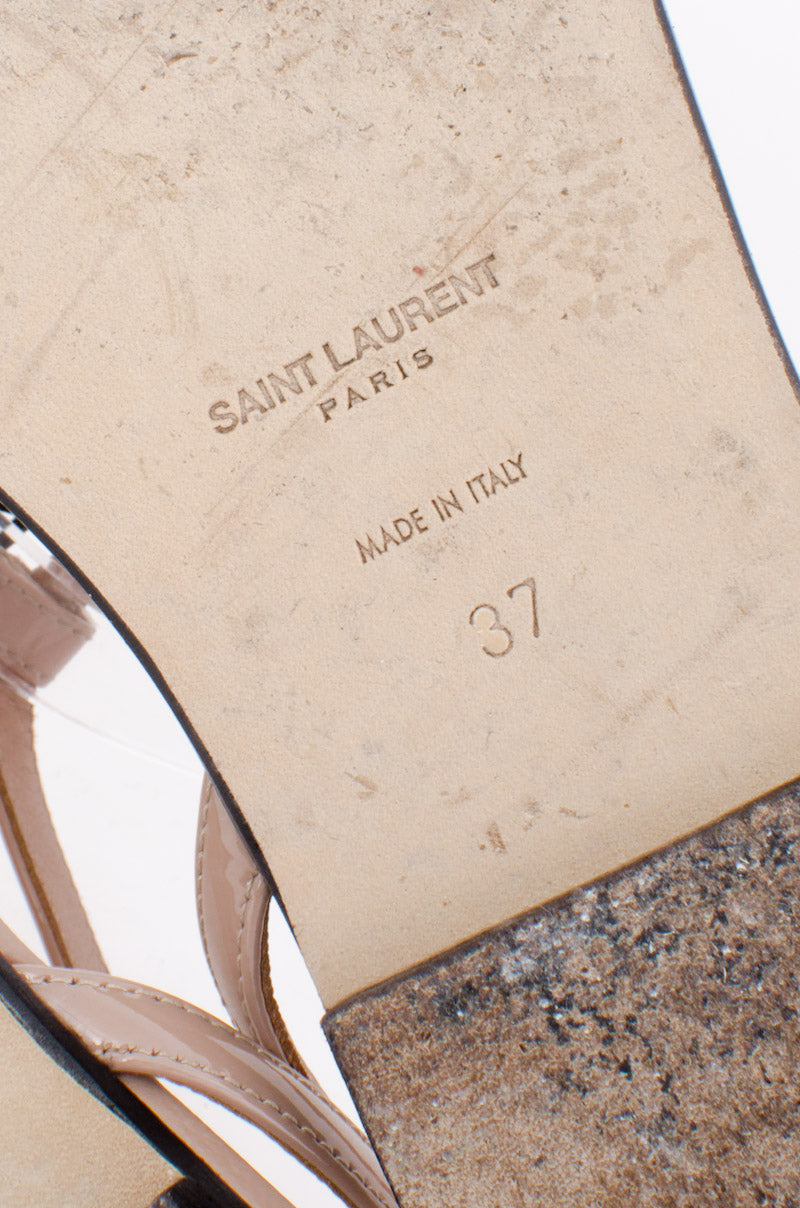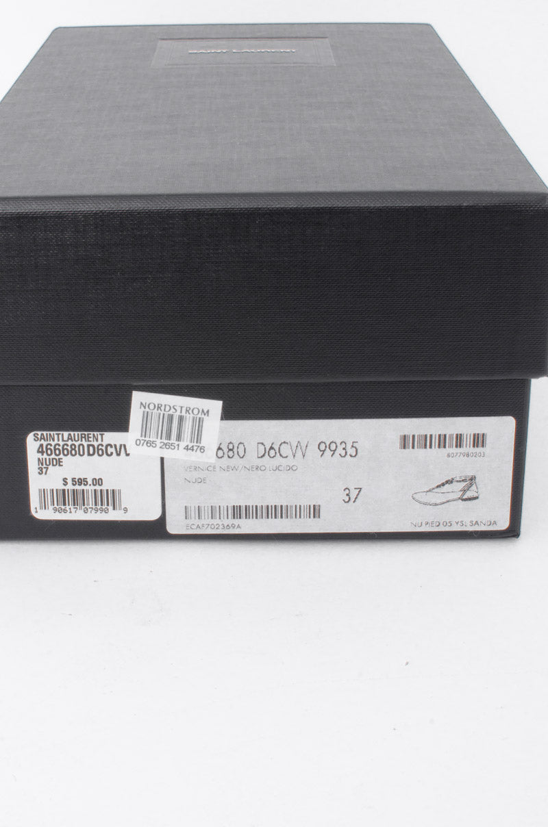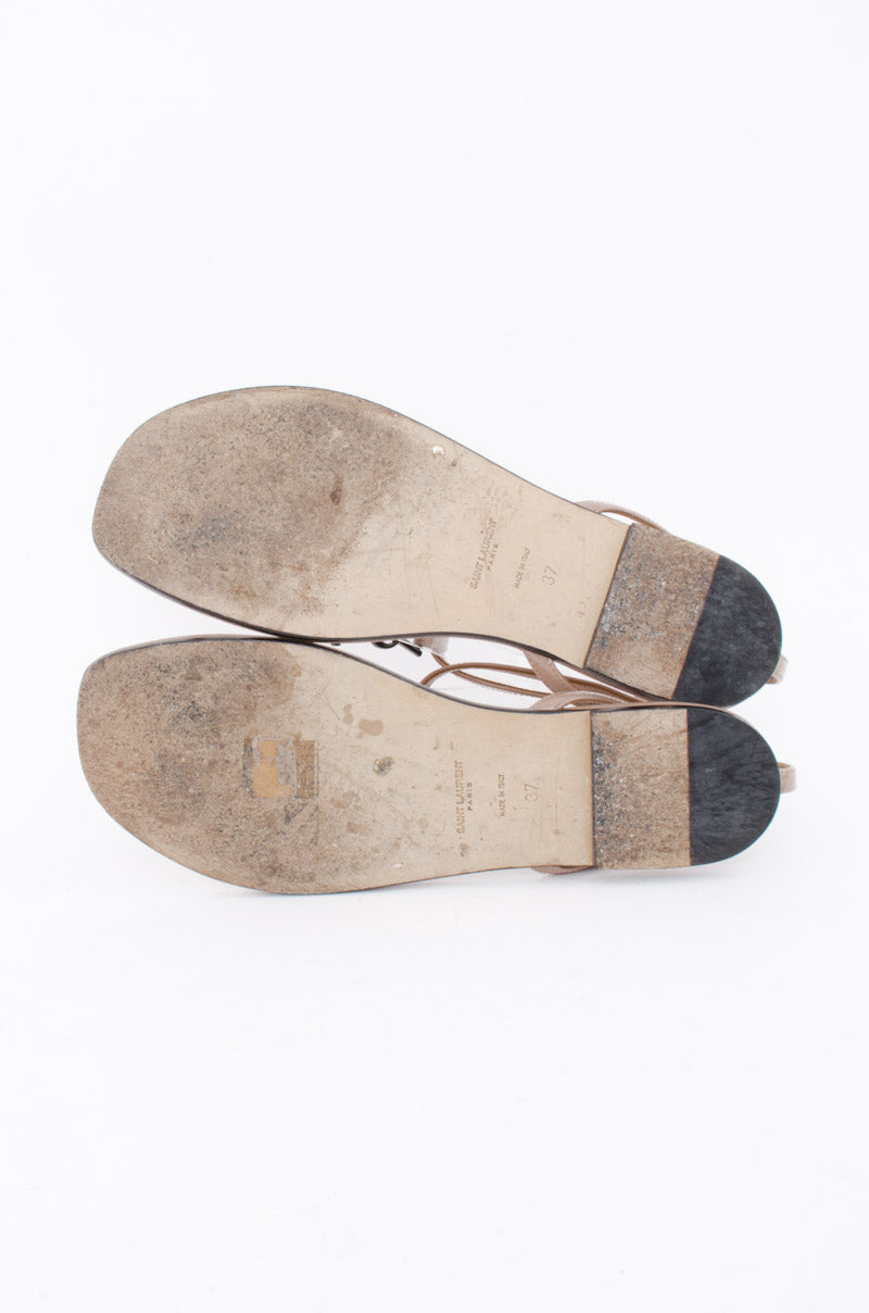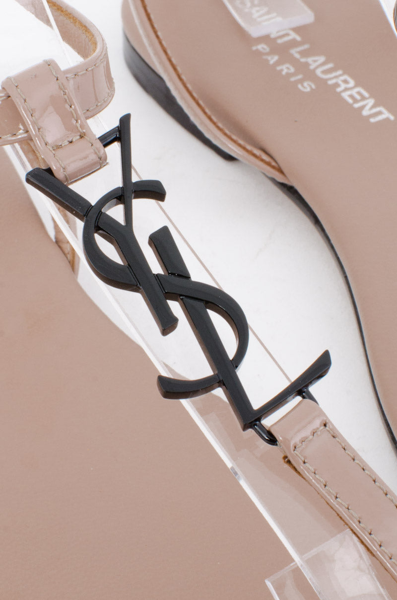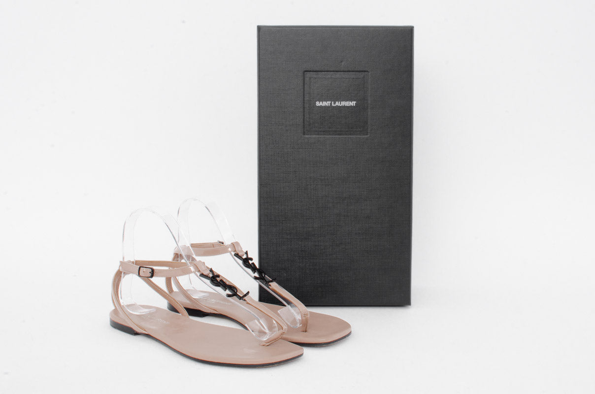 T-strap toe post with black YSL metal detail