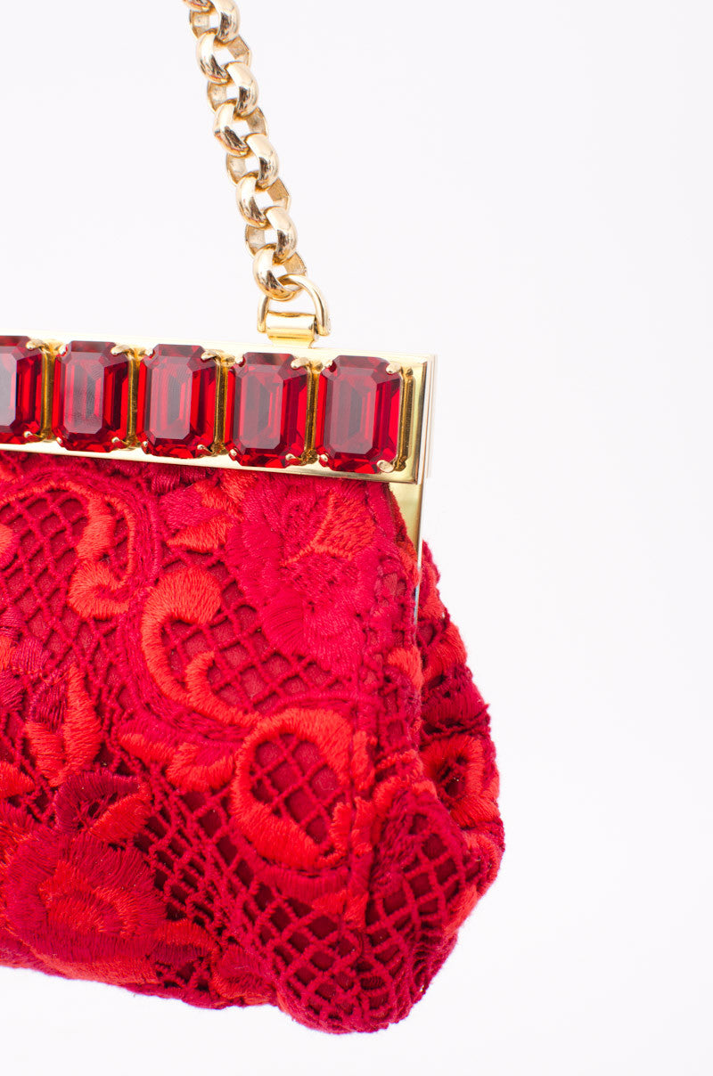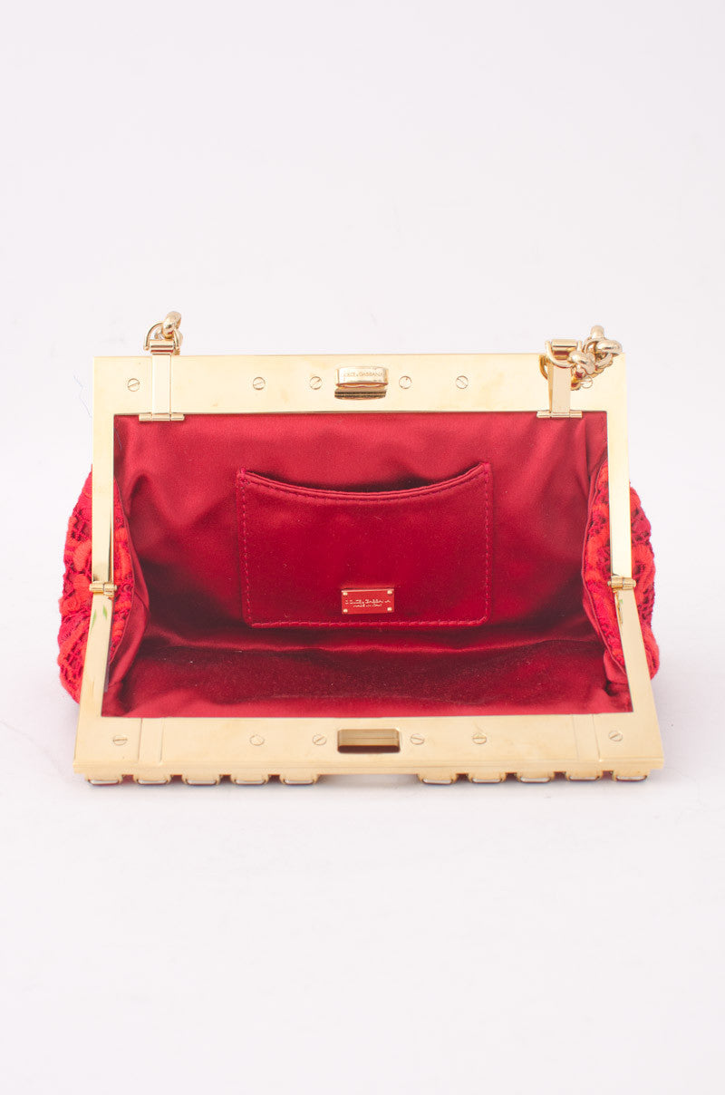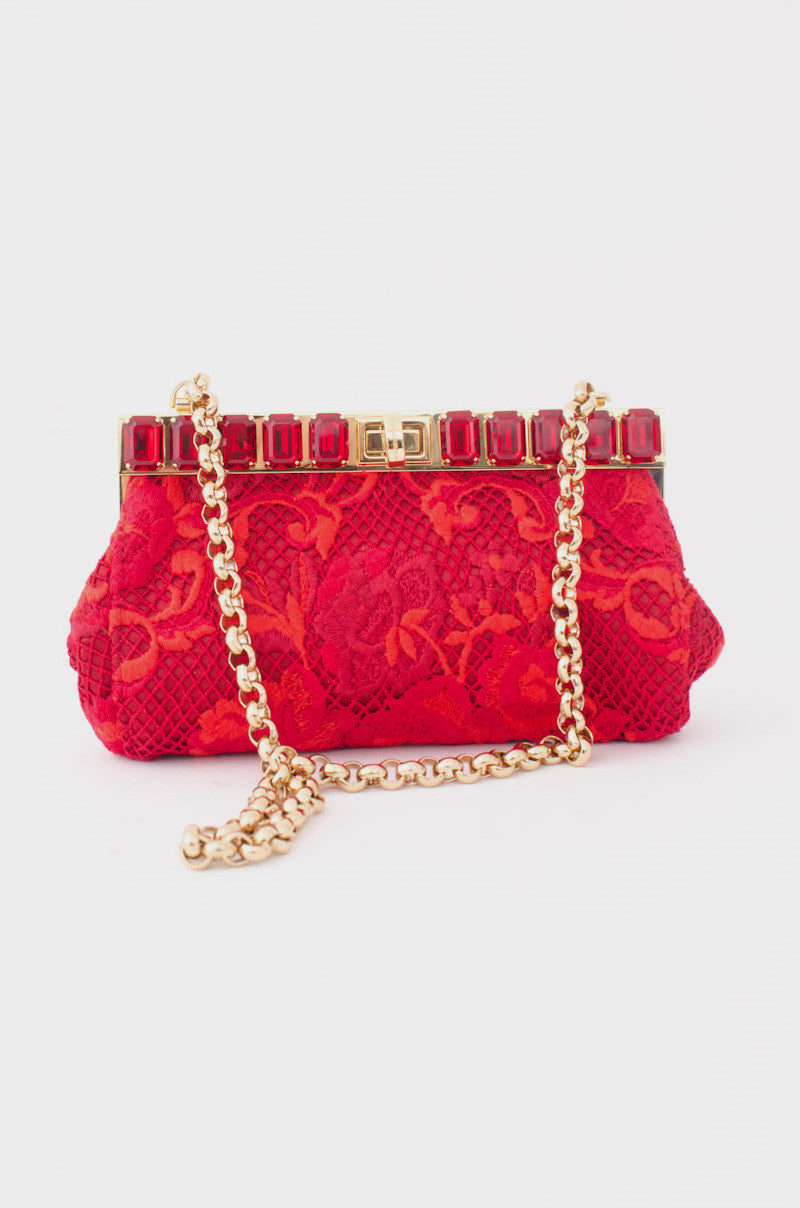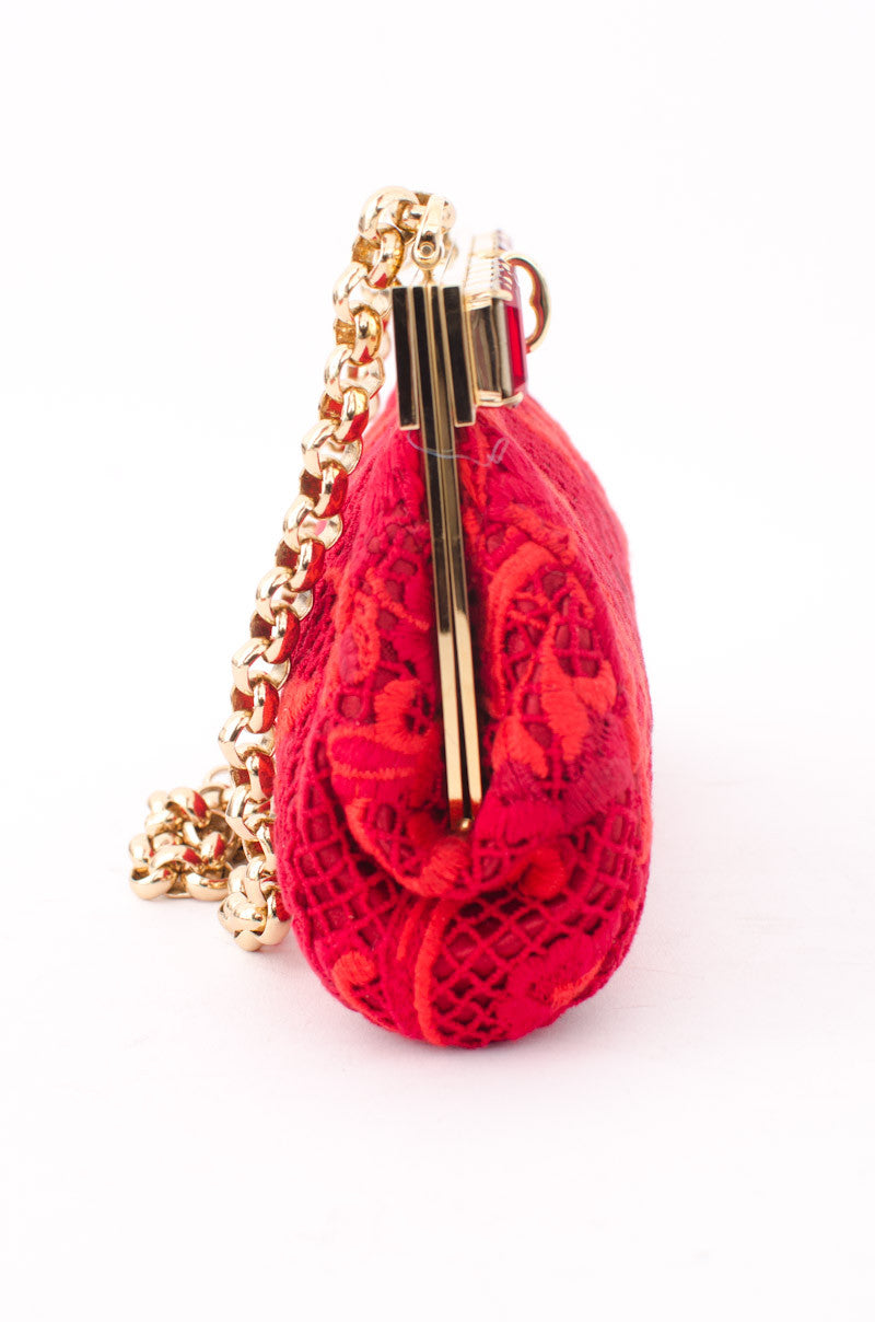 DOLCE & GABBANA RICAMO POCHETTE RED LACE RHINETONE CLUTCH