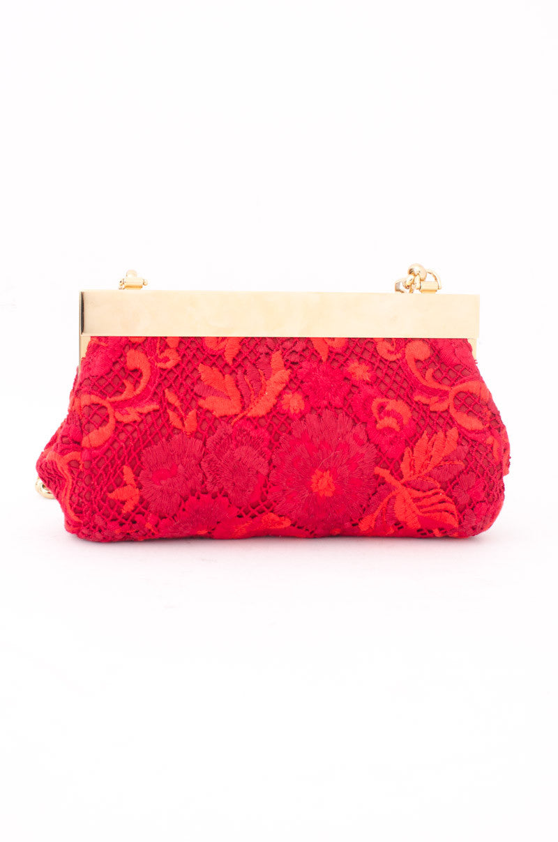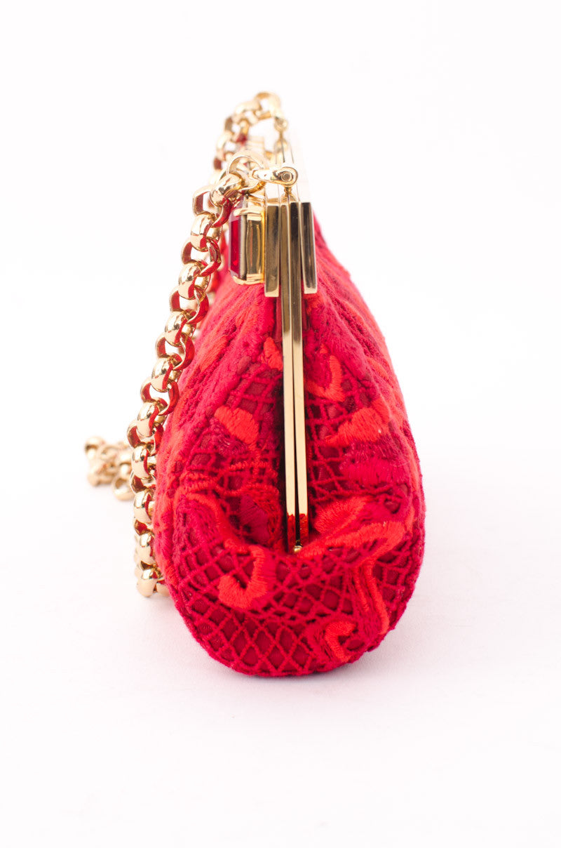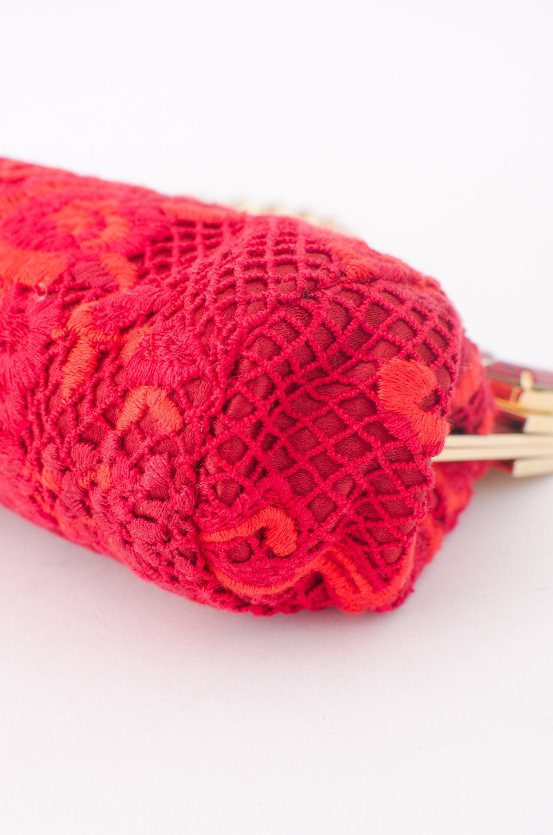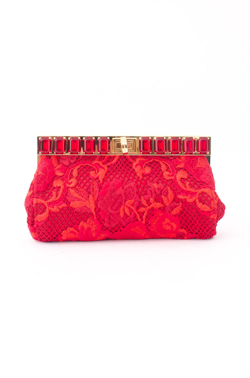 DOLCE & GABBANA RICAMO POCHETTE RED LACE RHINETONE CLUTCH