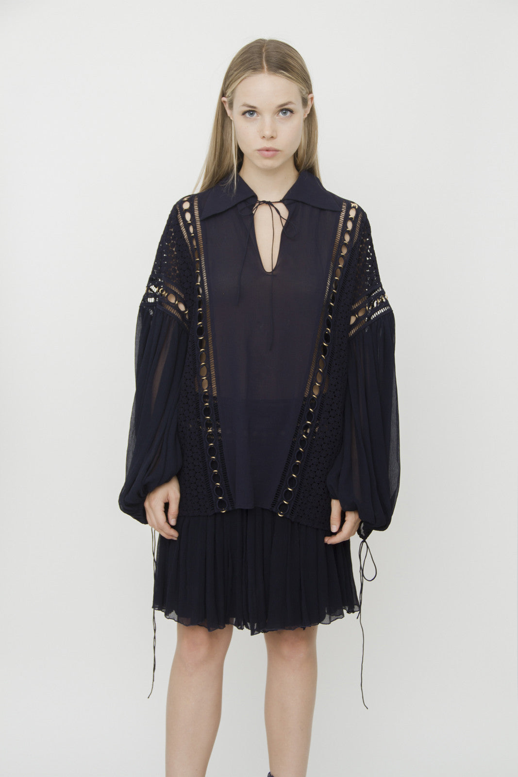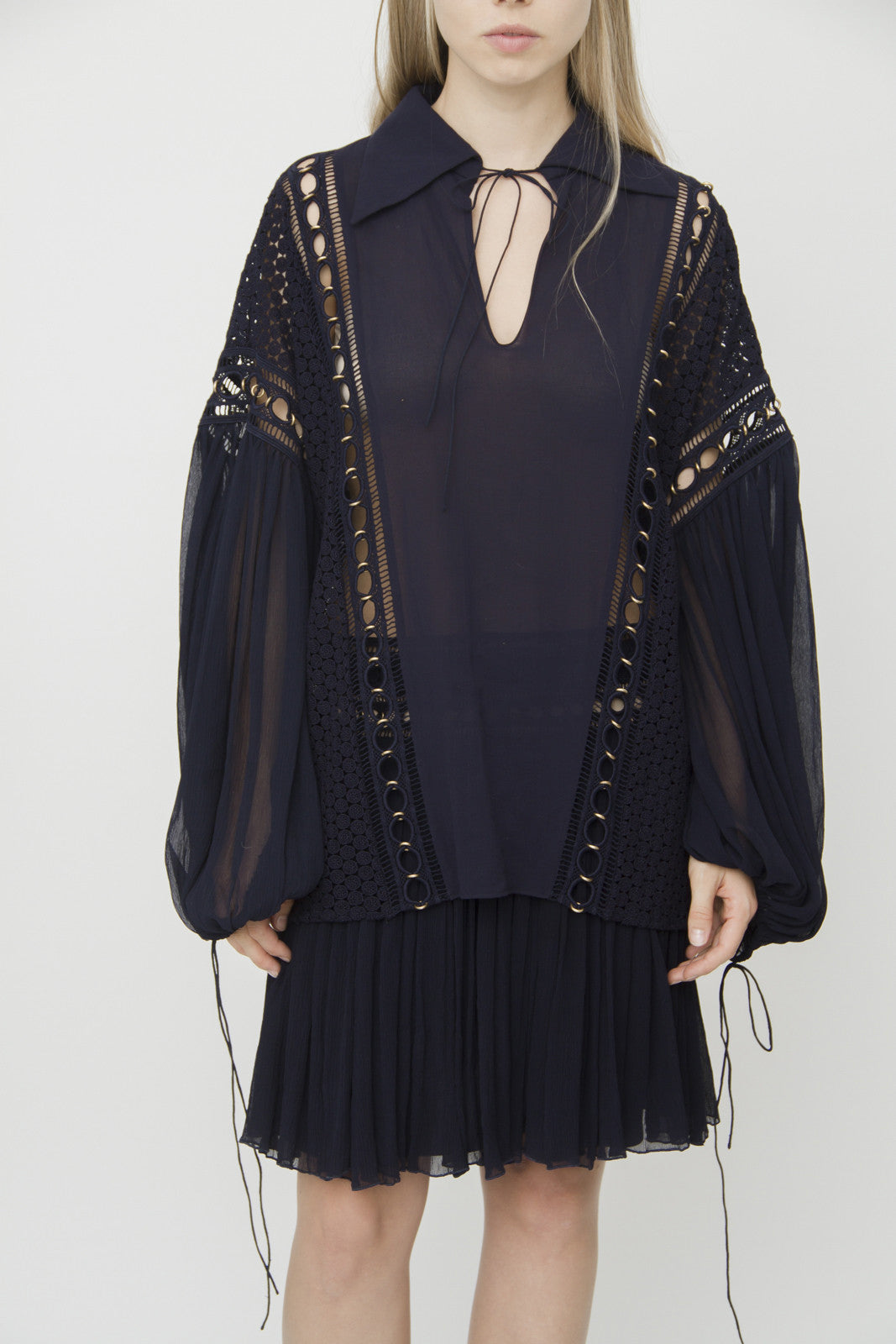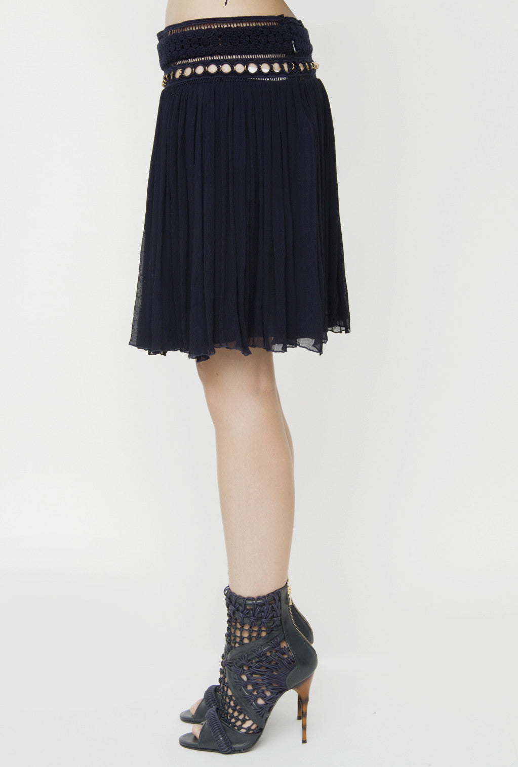 CHLOE NAVY RING EMBELLISHED MINI SKIRT
