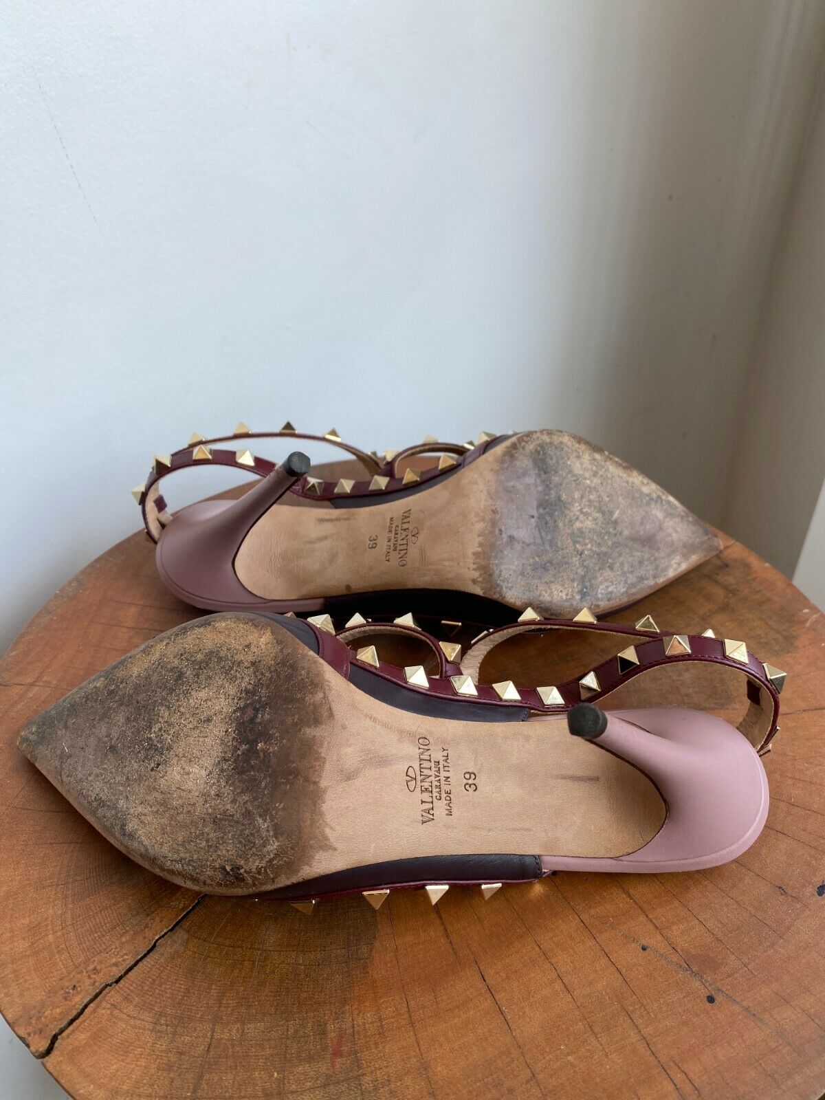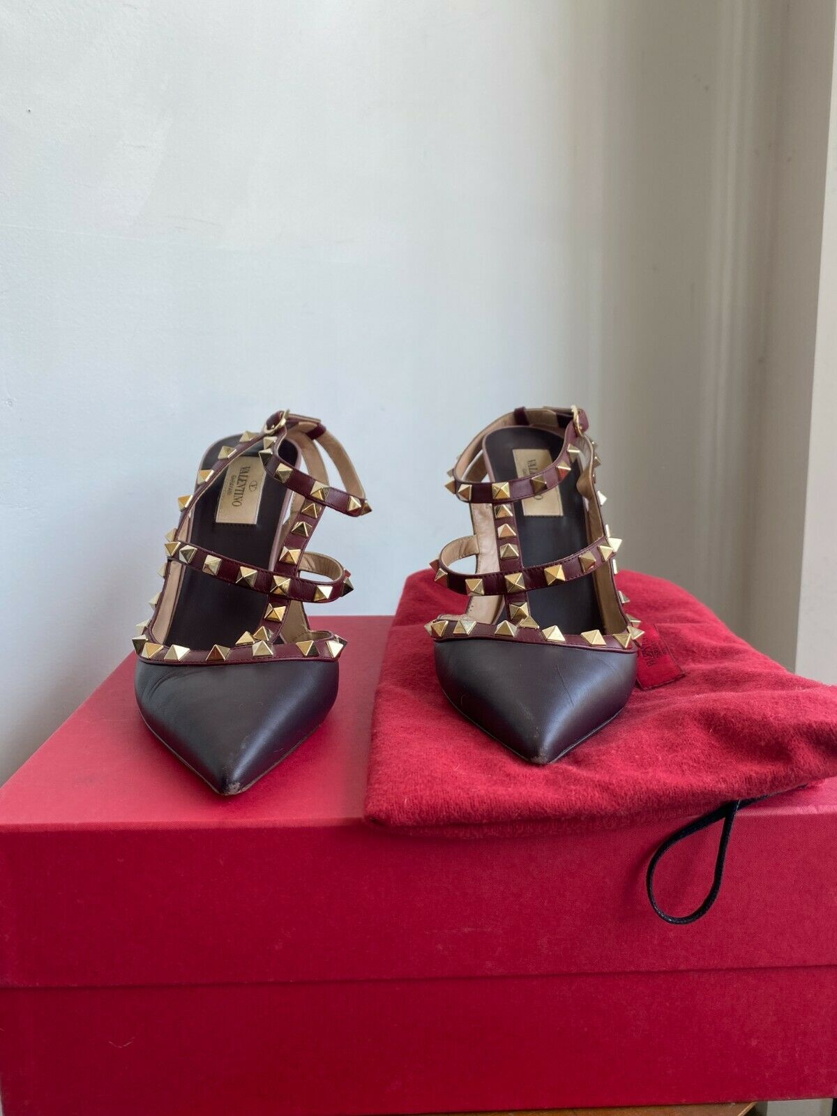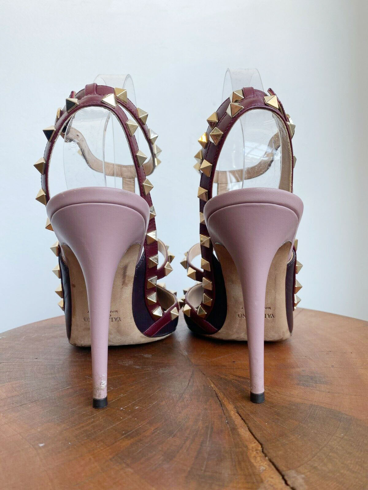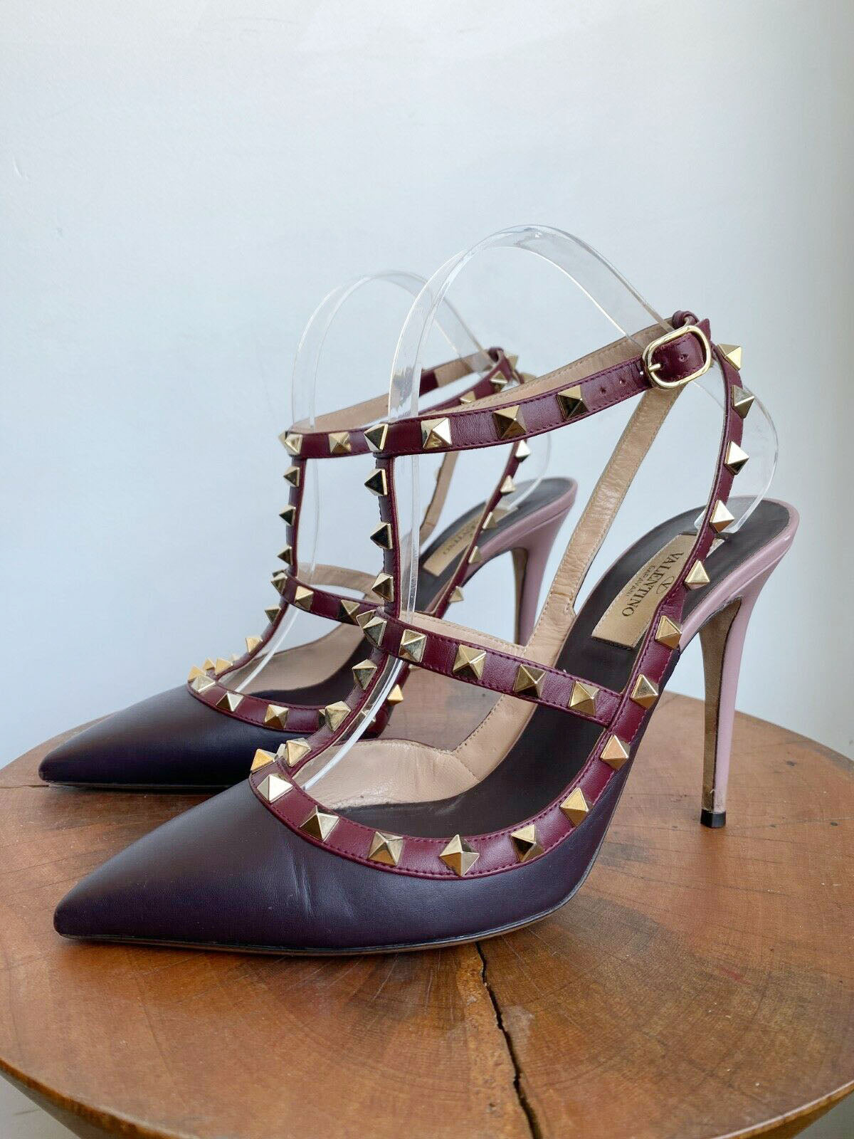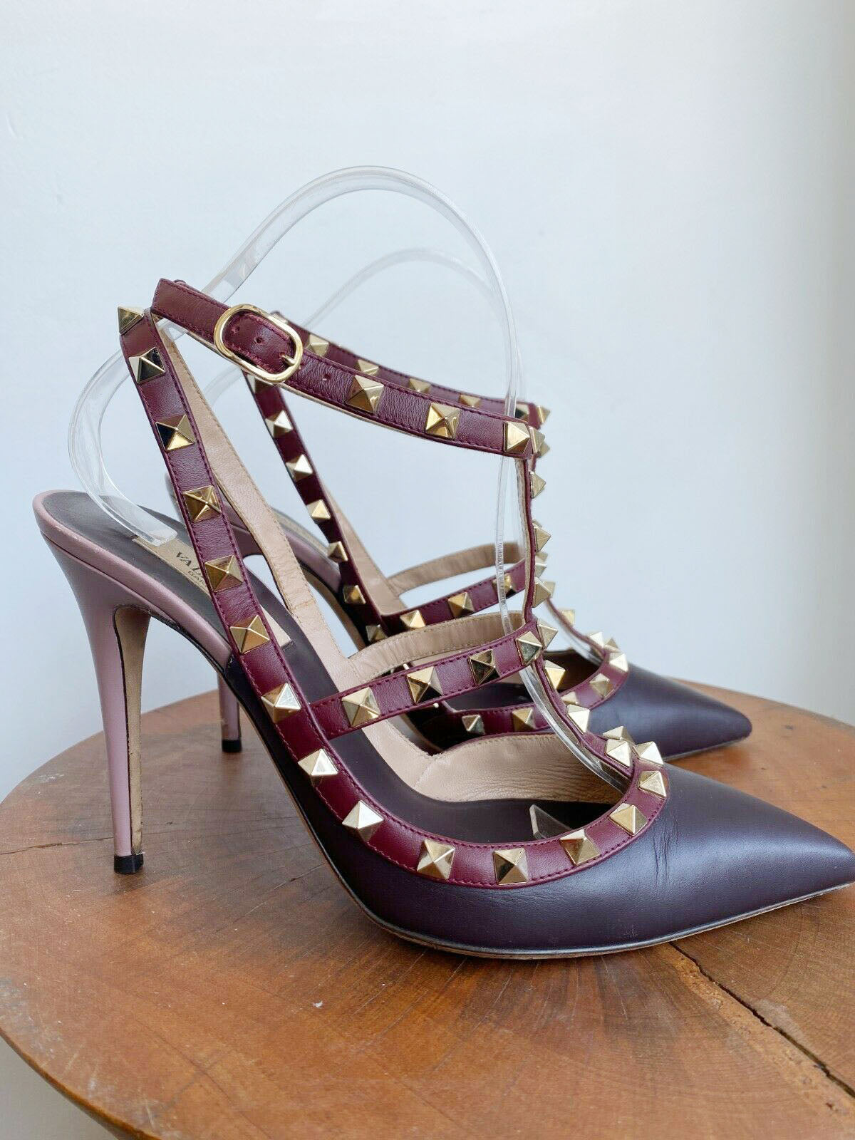 ROCKSTUD BURGUNDY ANKLE HEELS