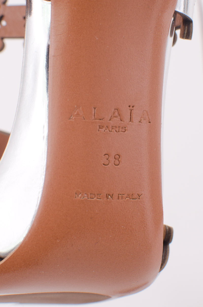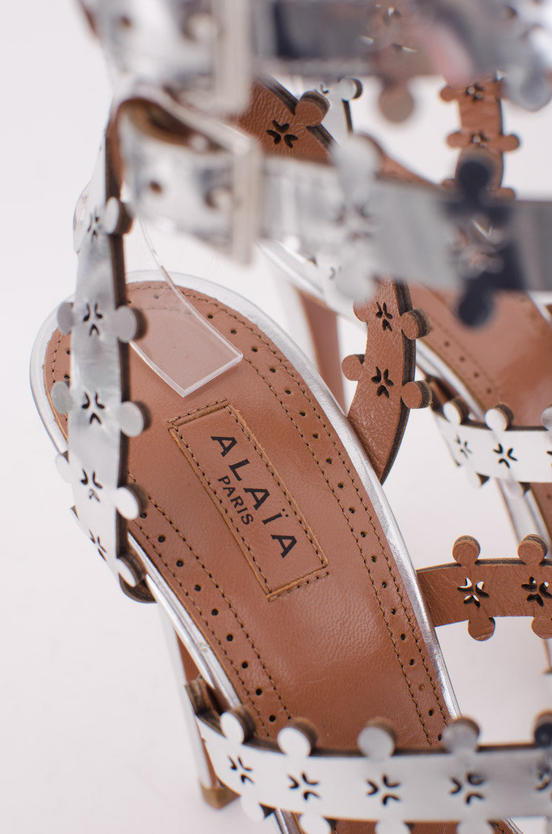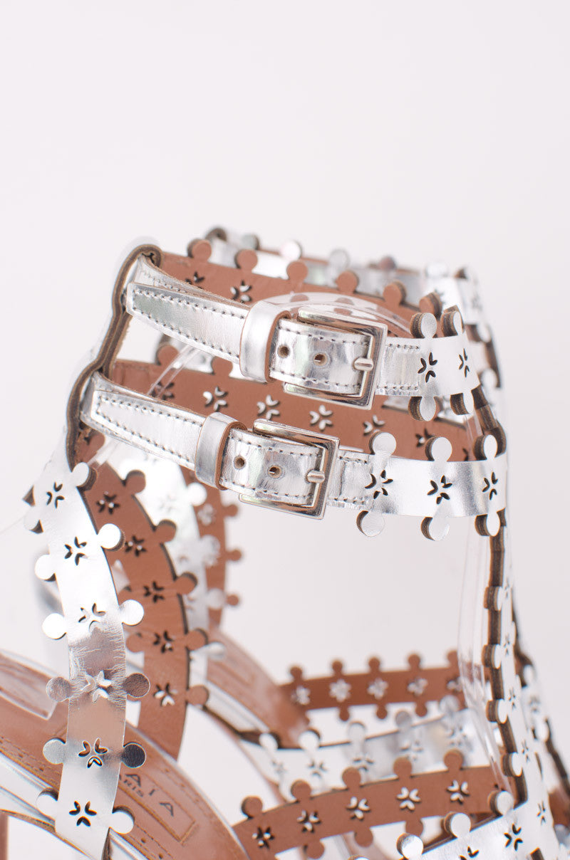 AZZEDINE ALAIA SILVER CUTOUT PLATFORM BOOTIES
