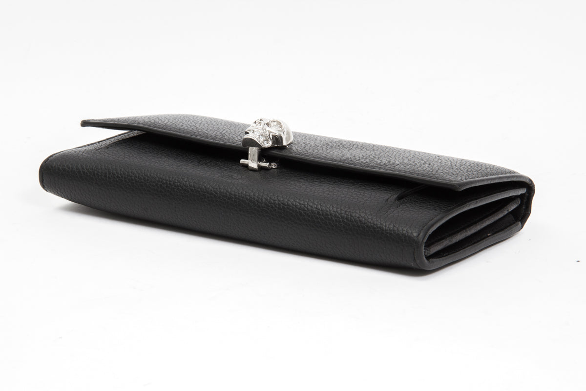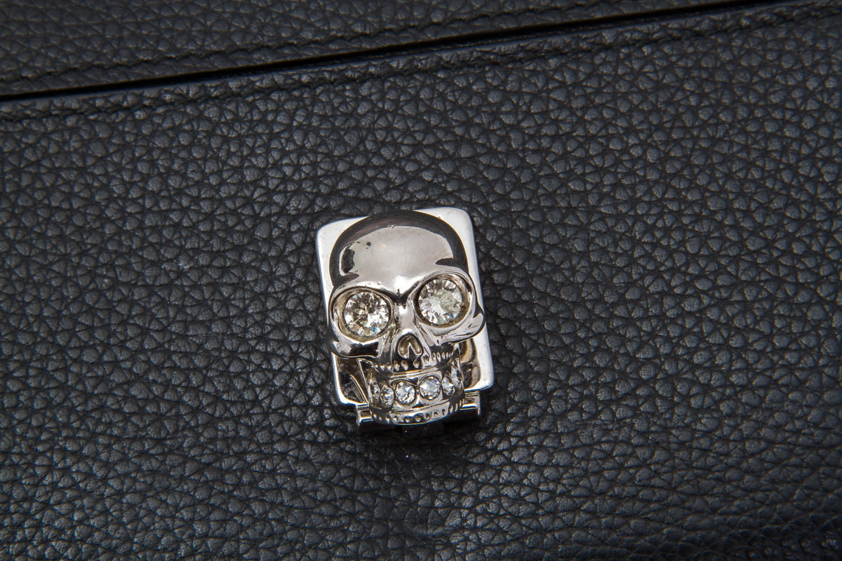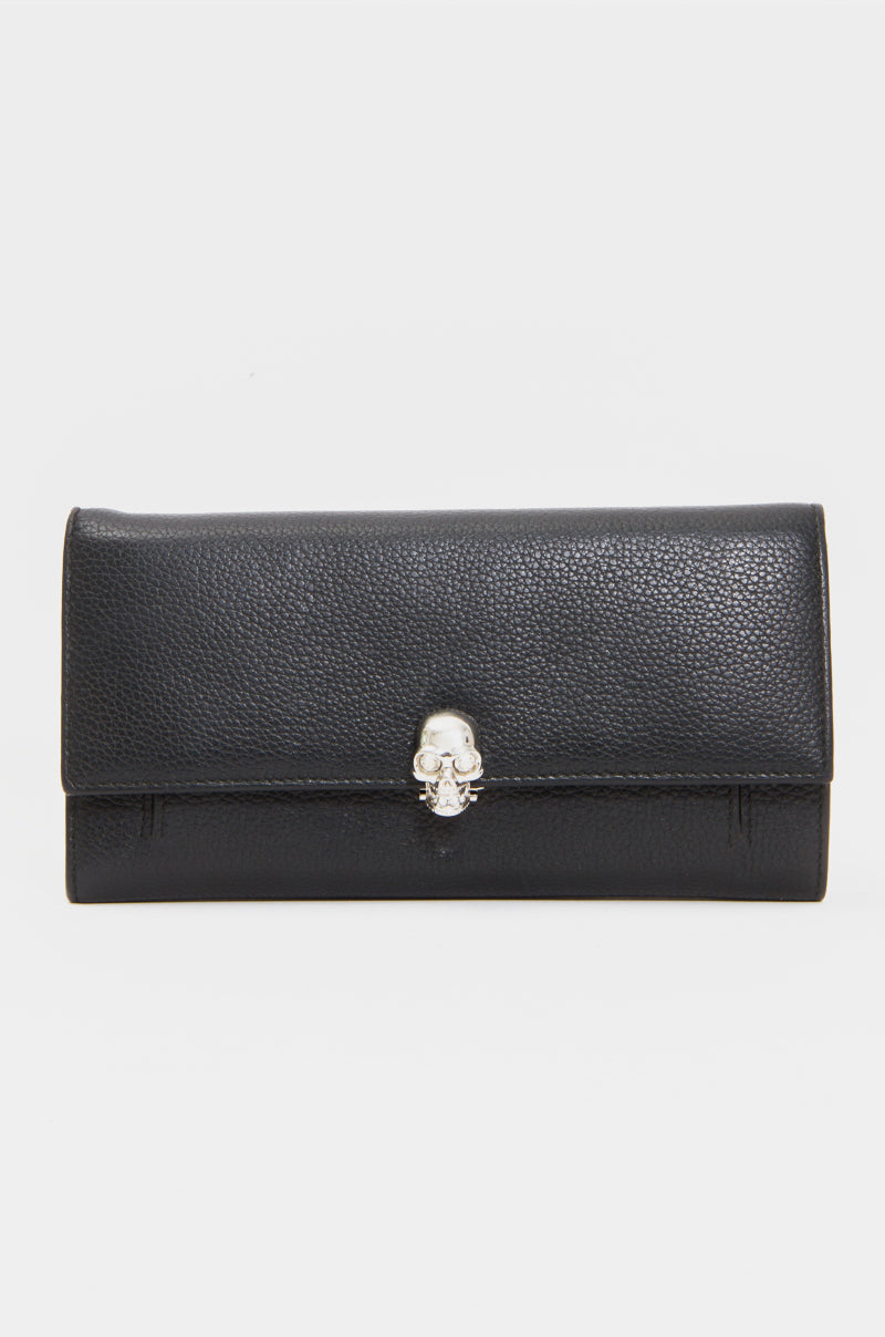Front wallet with metal skull closure