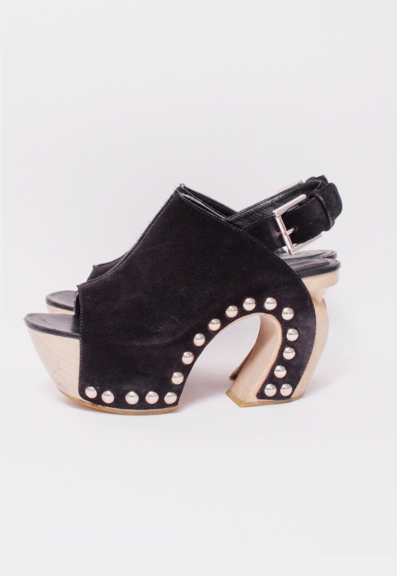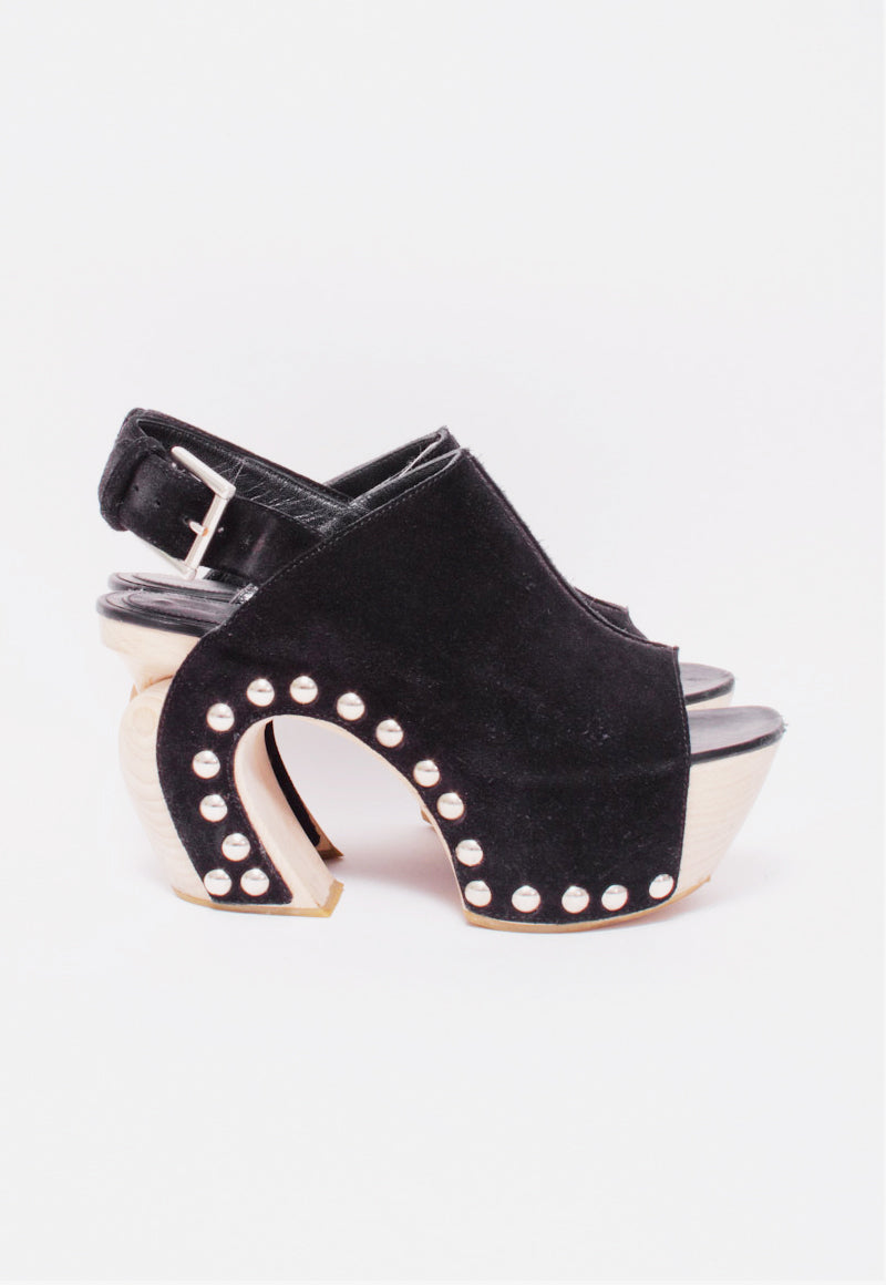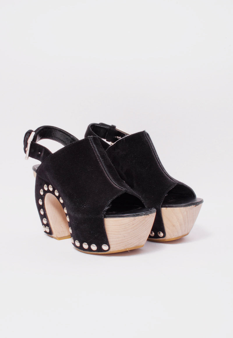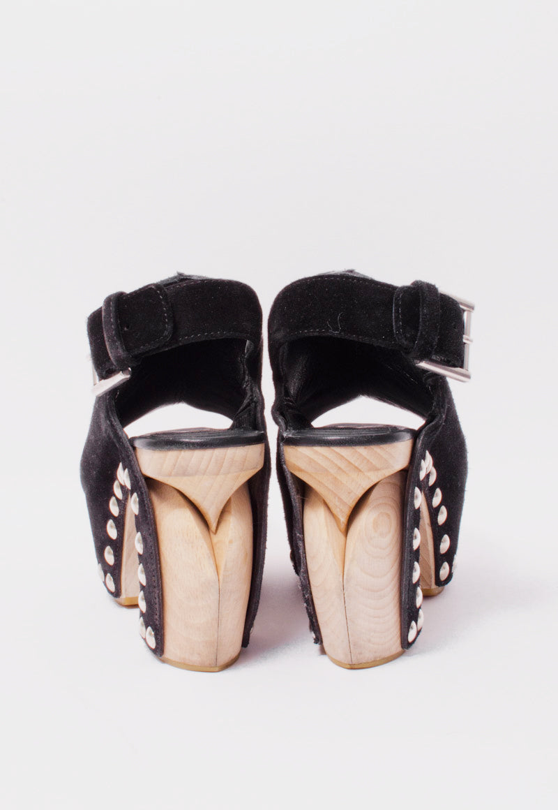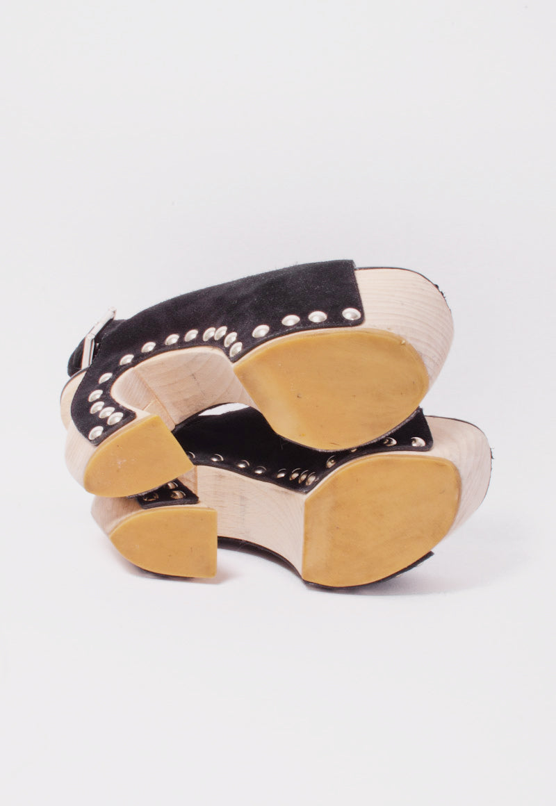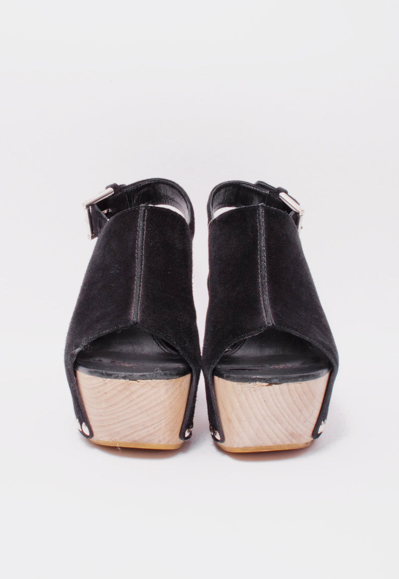 100% Calfskin suede leather upper / leather insole / wooden platform / rubber sole