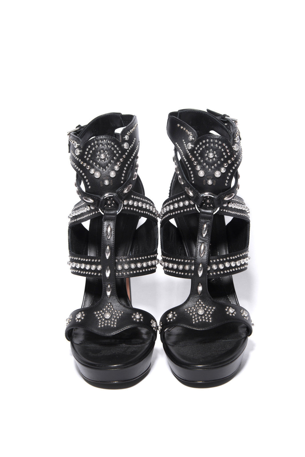 ALEXANDER MCQUEEN BLACK STUDDED PLATFORM BOOTIES