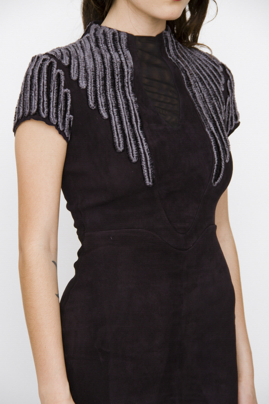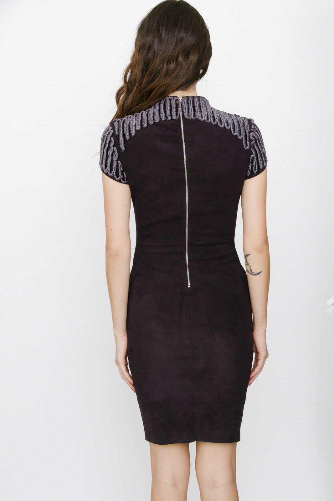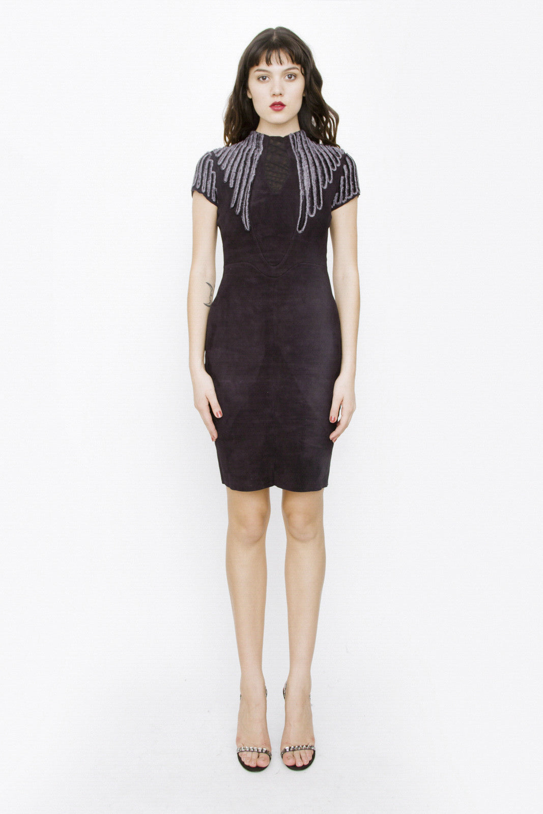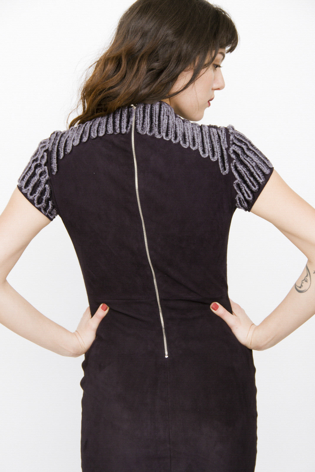 JITROIS GRAY / PURPLE SUEDE EMBROIDERED DRESS