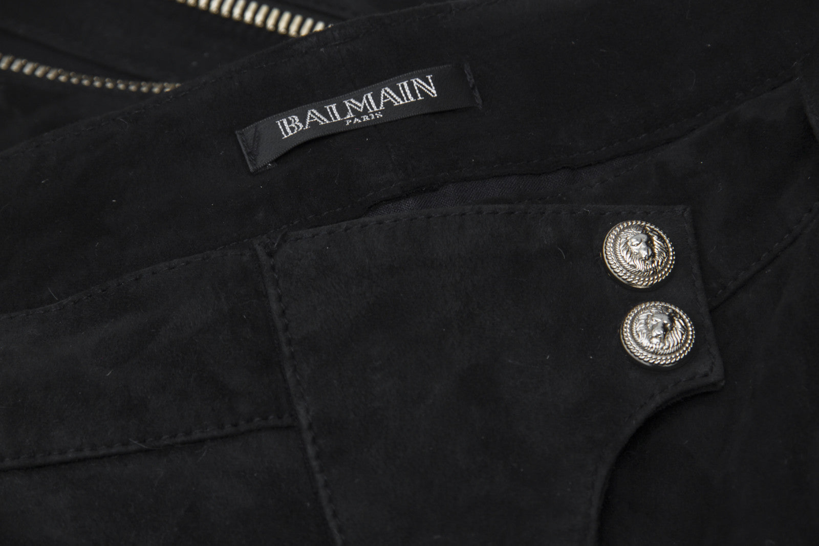 BALMAIN BLACK LEATHER SUEDE PANTS