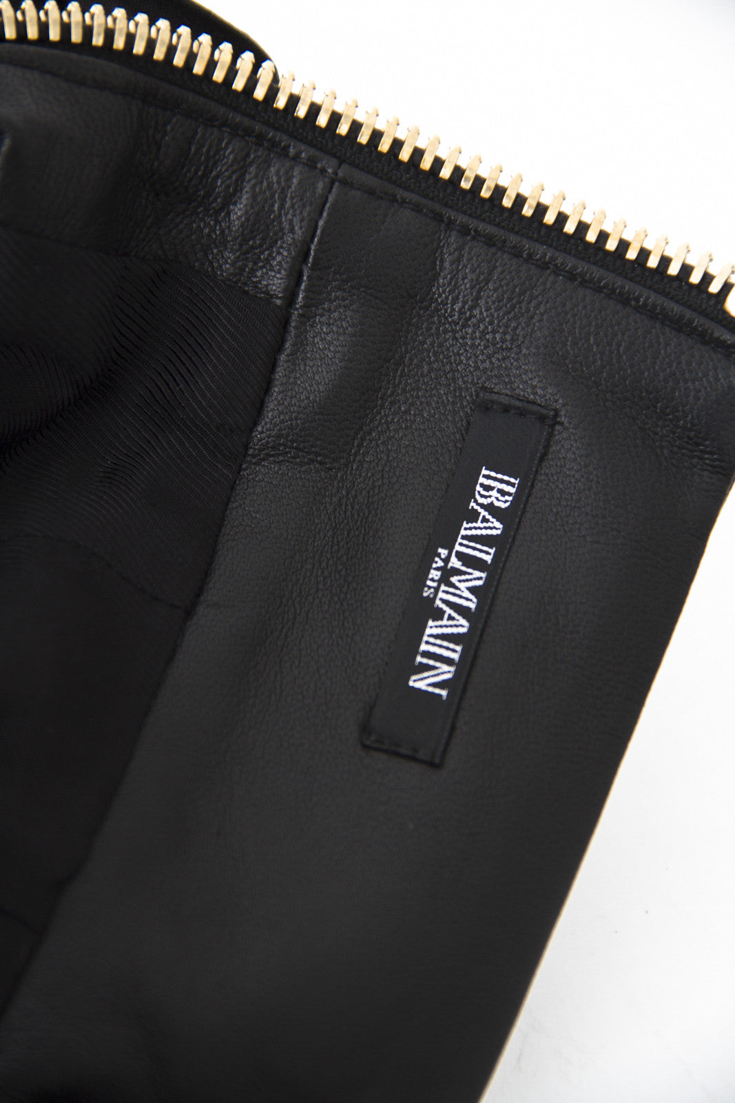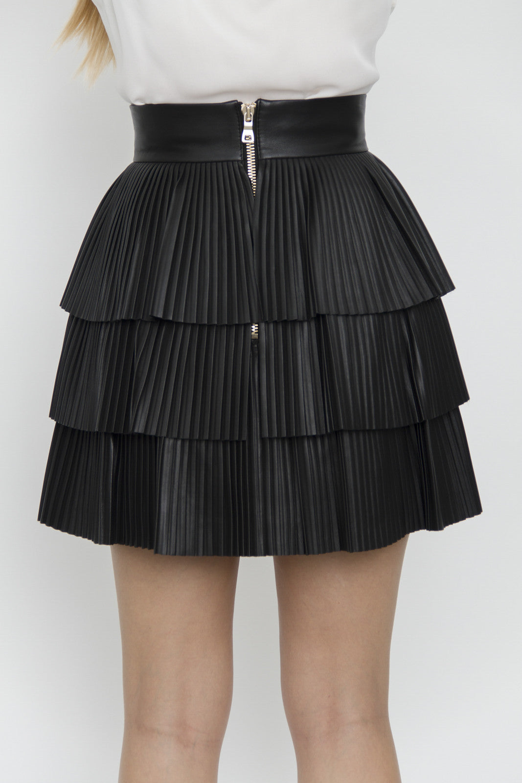 BALMAIN BLACK LEATHER TIERED SKIRT