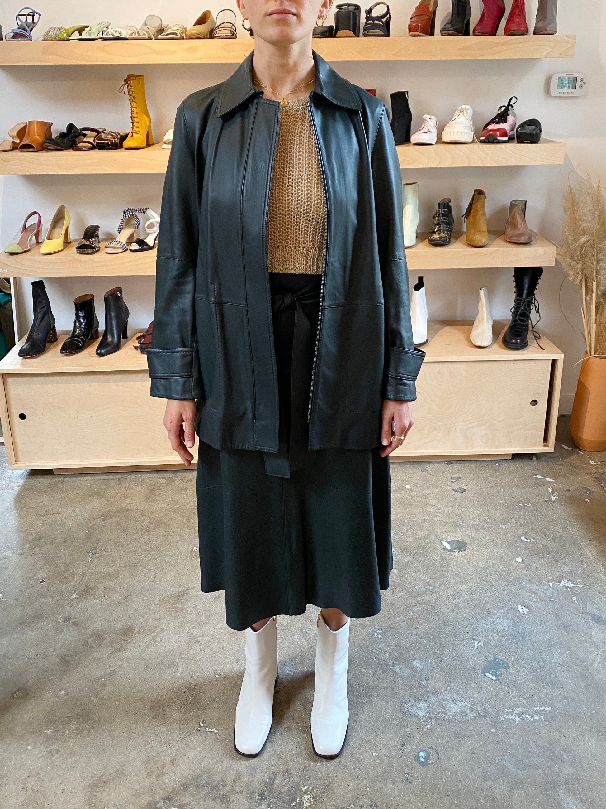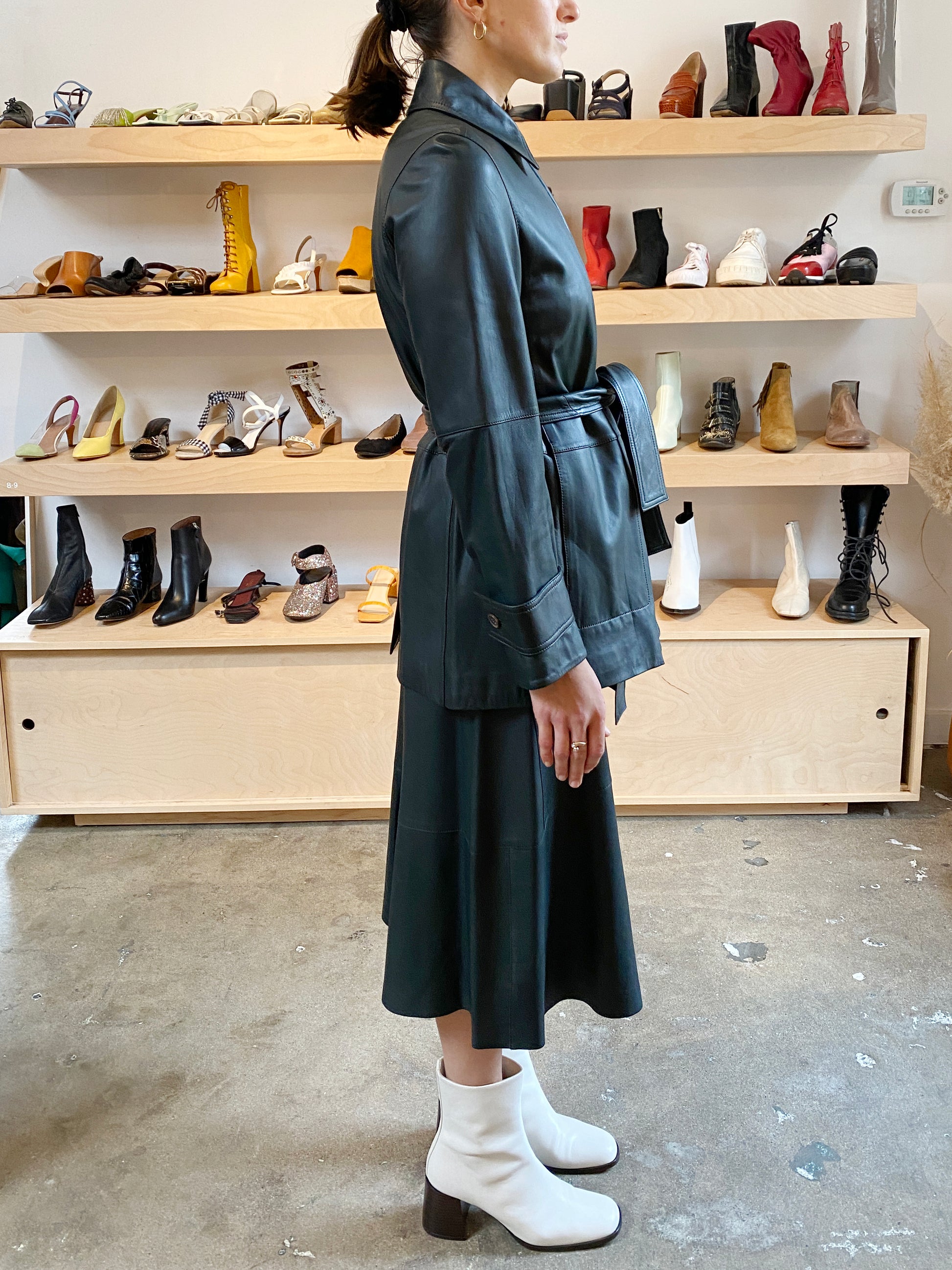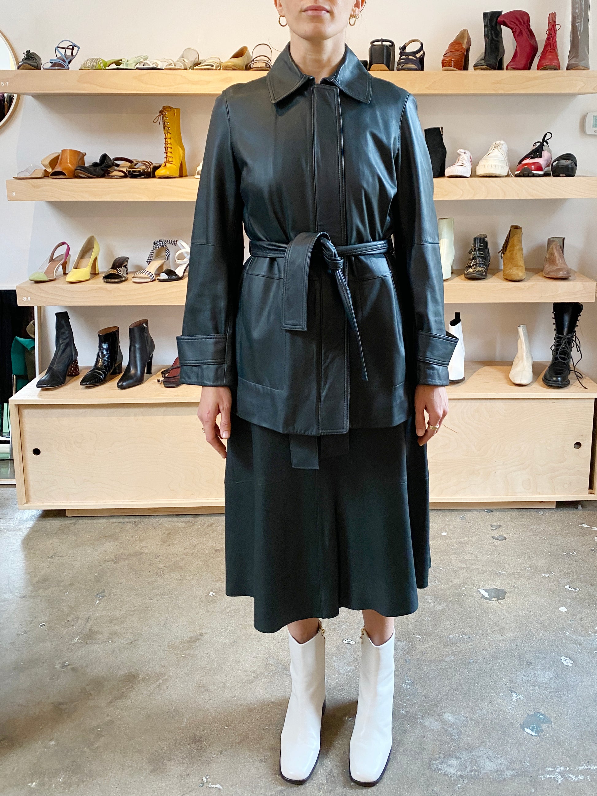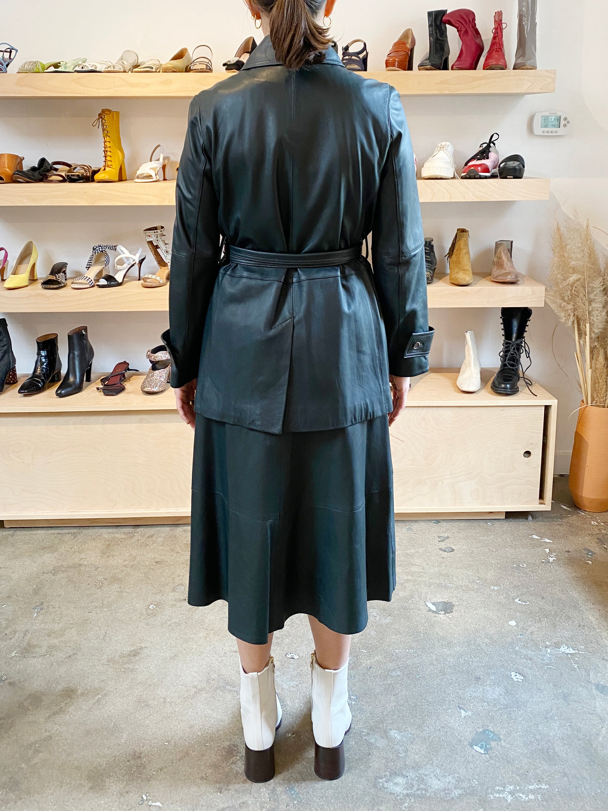 WATERCRESS HUNTER GREEN LEATHER TRENCH