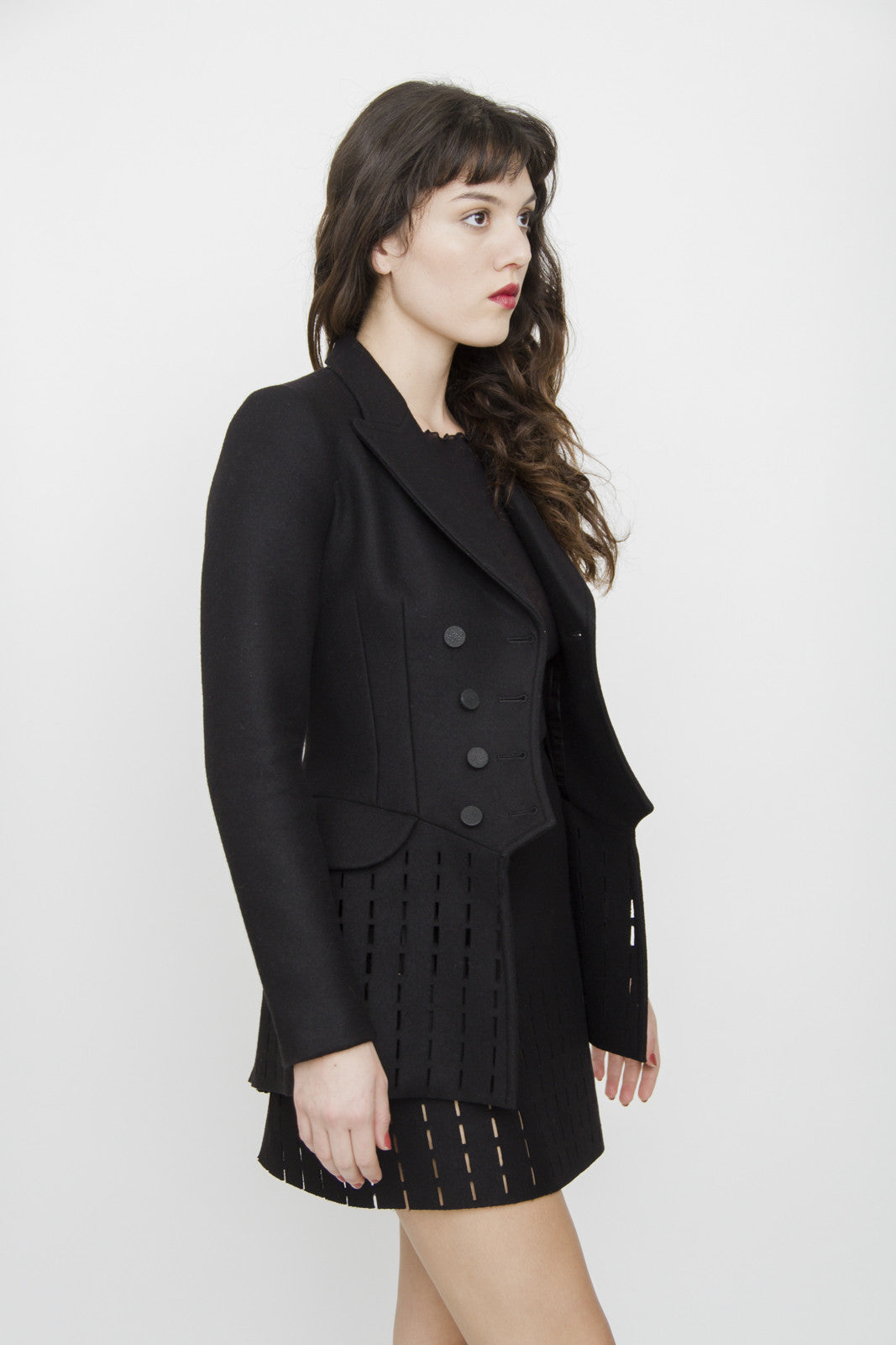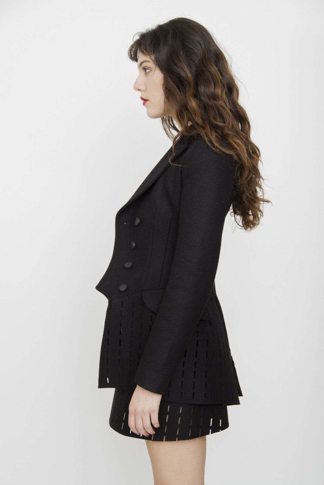 AZZEDINE ALAIA BLACK CUT OUT PEACOAT