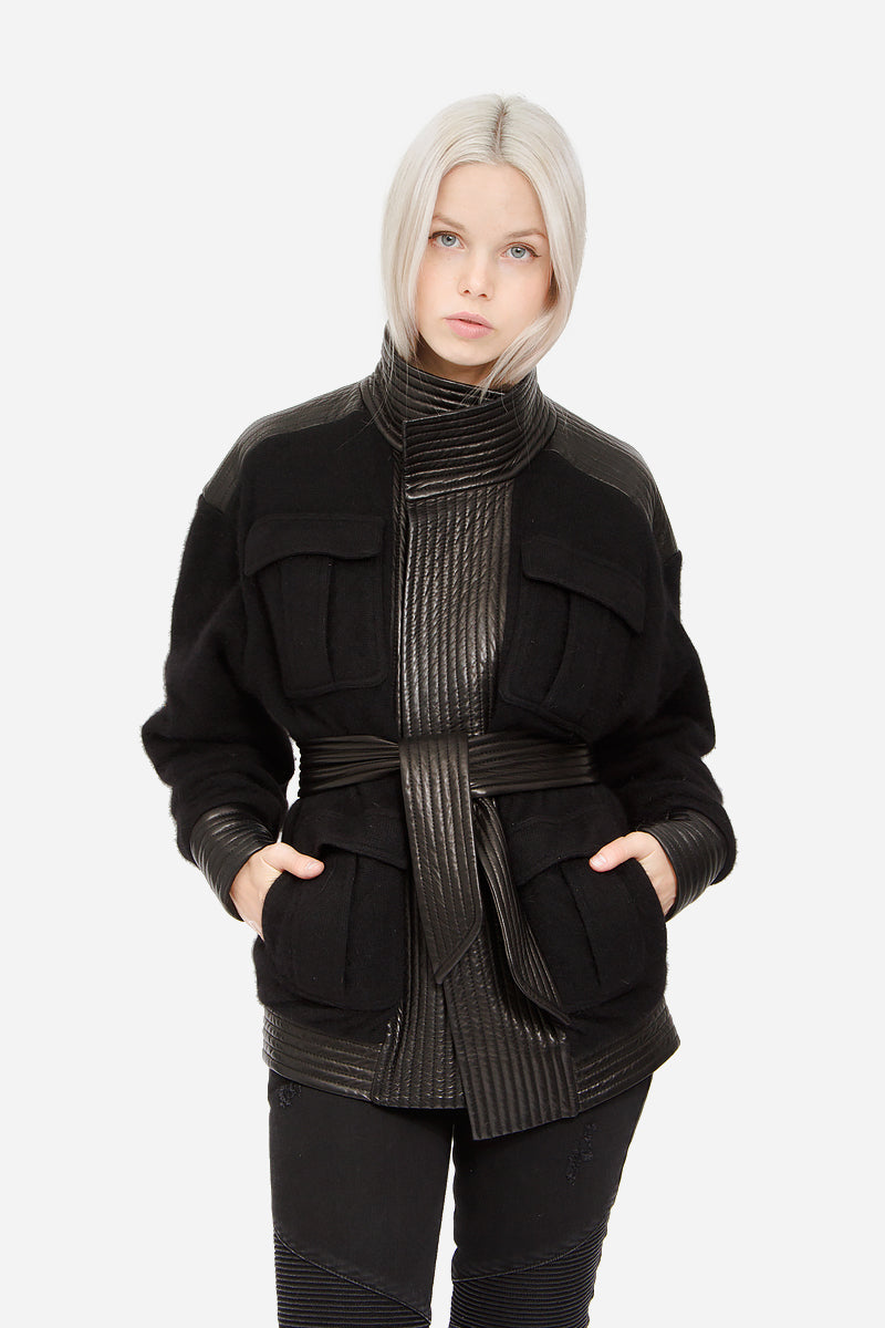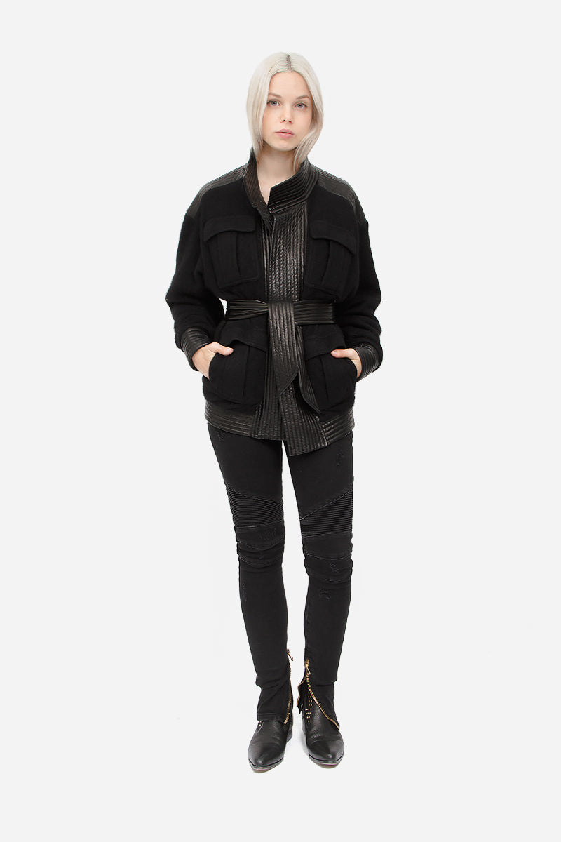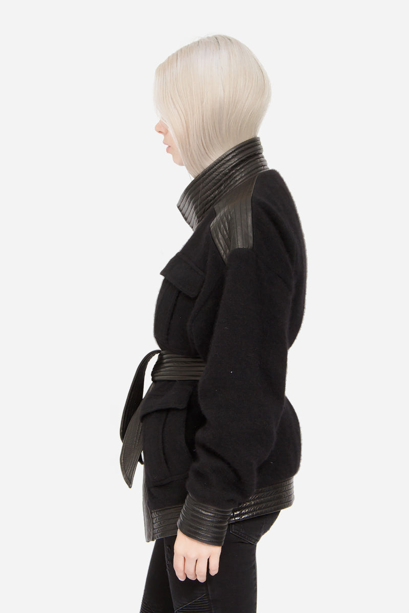 WOOL LEATHER WRAP JACKET