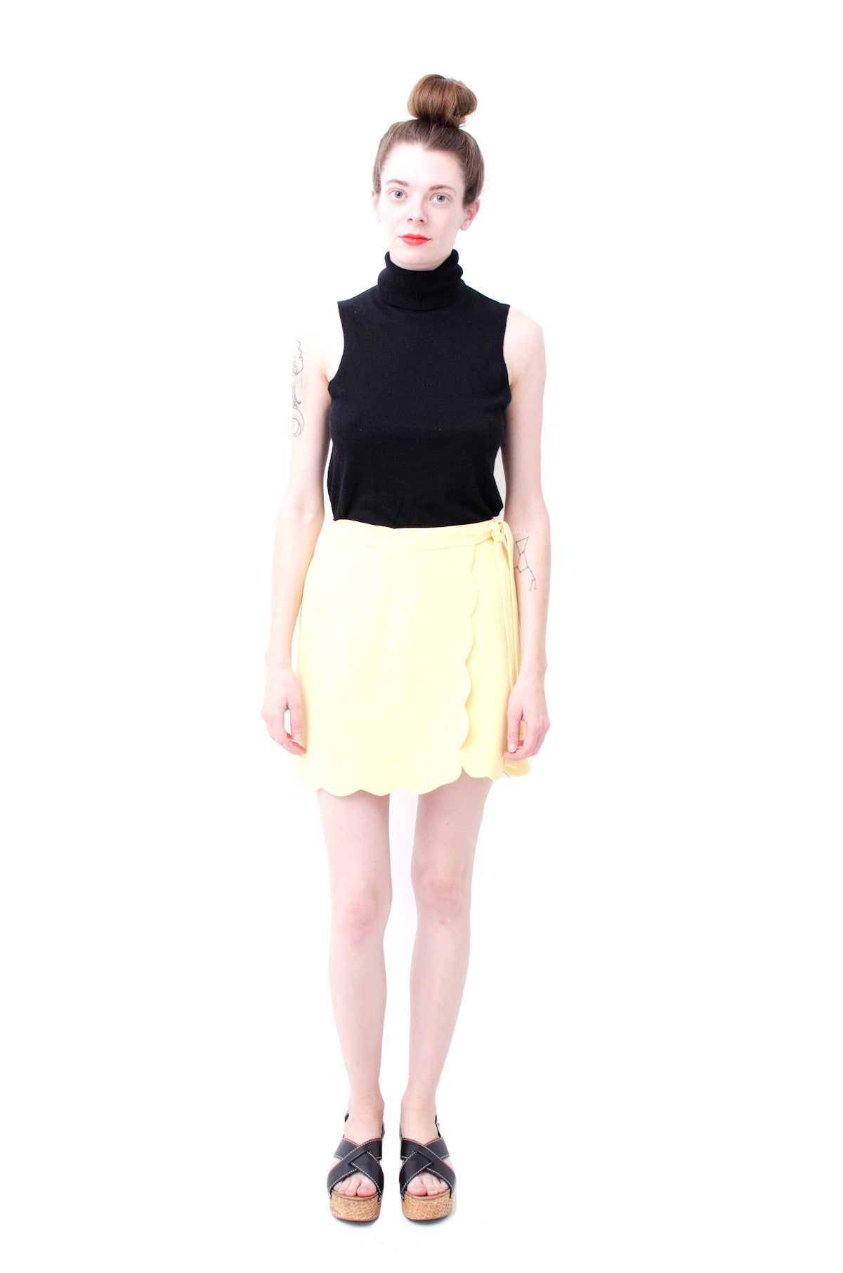YELLOW SCALLOPED MINI SKIRT